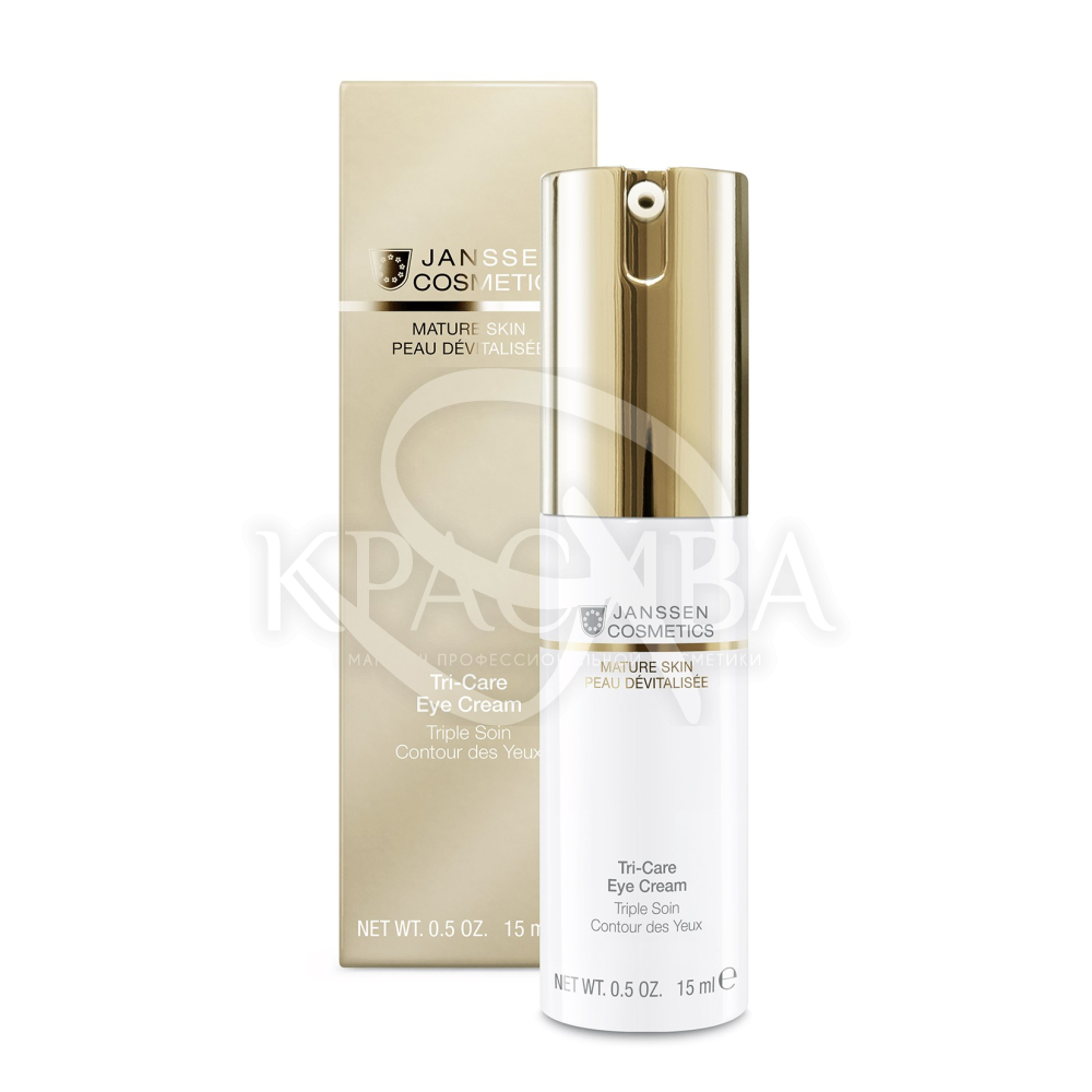 Опис: Шкіра навколо очей дуже чутлива. На ній насамперед відбиваються стрес, втома та вікові зміни. Tri-Care Eye Cream з комплексом Cellular Regeneration спеціально розроблений для активного догляду за періорбітальною зоною. Крем із посиленою формулою інтенсивно зволожує, пом'якшує, зміцнює шкіру навколо очей та розгладжує зморшки.