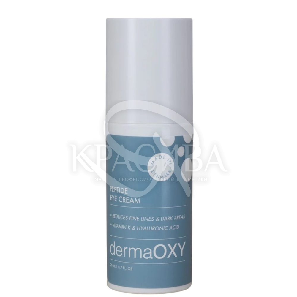 Опис: Тонка шкіра навколо очей — одна з найуразливіших, тому вона потребує додаткового зволоження та активного догляду. Пептидний крем для шкіри навколо очей dermaOXY містить активні інгредієнти, які заповнюють та відновлюють баланс вологи у шкірі, а також активно зменшують мішки та темні кола під очима.