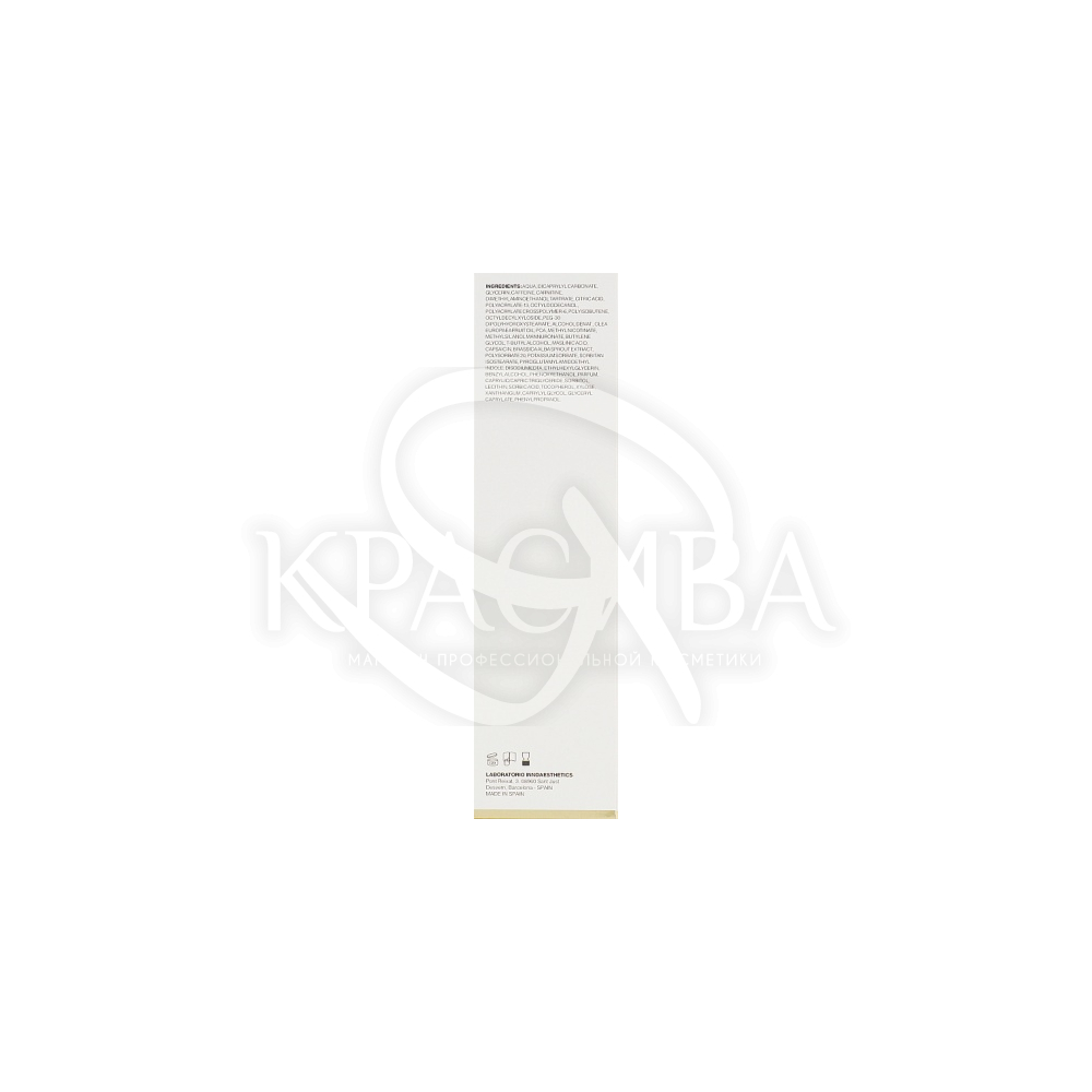 Склад: Кофеїн; карнітин; ДМАЕ; олія плодів оливкового дерева; метилнікотинат; органічний кремній (метилсиланол маннуронат); Olive active maslinico LPD® (маслинова кислота, інкапсульована в ліпосомах); капсаїцин; екстракт паростків гірчиці білої; етилгексилгліцерин; суміш тригліцеридів каприлової та капринової кислот; токоферол.