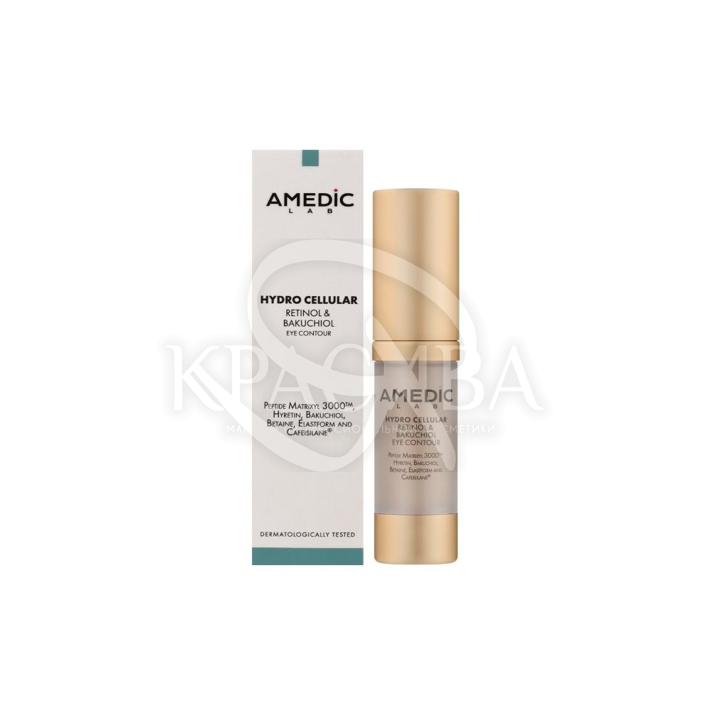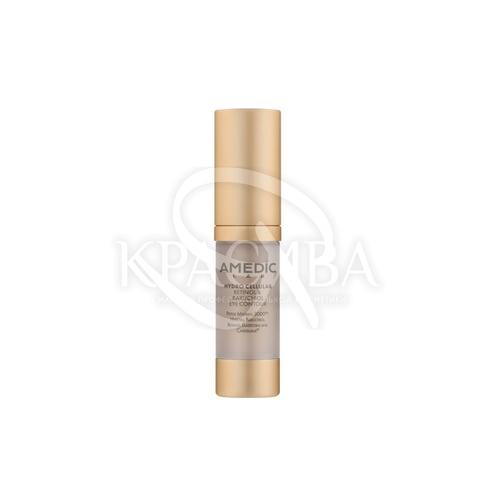 Опис: Тонка шкіра в зоні навколо очей першою реагує на вікові зміни та зовнішні фактори. Крем Amedic Hydro Celular Retinol&Bakuchinol Eye Contour допомагає зменшити прояви втоми та зберегти її молодість.