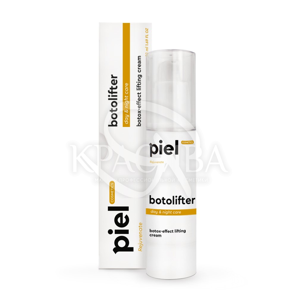 Опис: Ліфтинговий крем проти мімічних зморшок день/ніч Piel Botolifter Cream зменшує кількість і глибину мімічних зморшок, запобігає виникненню нових, підвищує пружність та еластичність шкіри, підтягує контур обличчя. Тонізує та стимулює кровообіг. Пептид Syn-Ake, отриманий з отрути храмової змії, - одна з найкращих розробок швейцарської фармацевтичної індустрії, відзначена нагородою Swiss Technology Award. Дослідження показали, що пептид здатний зменшувати глибину зморшок у ділянці чола на 52%, і навіть значно скоротити інші мімічні зморшки. Seamollient миттєво зволожує шкіру на клітинному рівні, ремоделює її мікроструктуру, ефективно коригуючи вікові зміни.