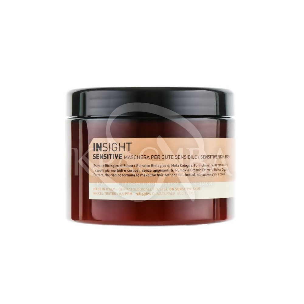 Опис: Маска для чутливої шкіри голови Insight Sensitive Skin Mask створена спеціально для шкіри, схильної до подразнення, сухості та лущення. Особливо добре підходить для тих, хто страждає на гіперчутливу шкіру або просто хоче зберегти здоров'я епідермісу за допомогою м'яких, але ефективних засобів. Цей продукт чудово підходить для всієї родини! Маска підтримує природний баланс шкіри голови, забезпечує максимальну м'якість та свіжість шкіри!