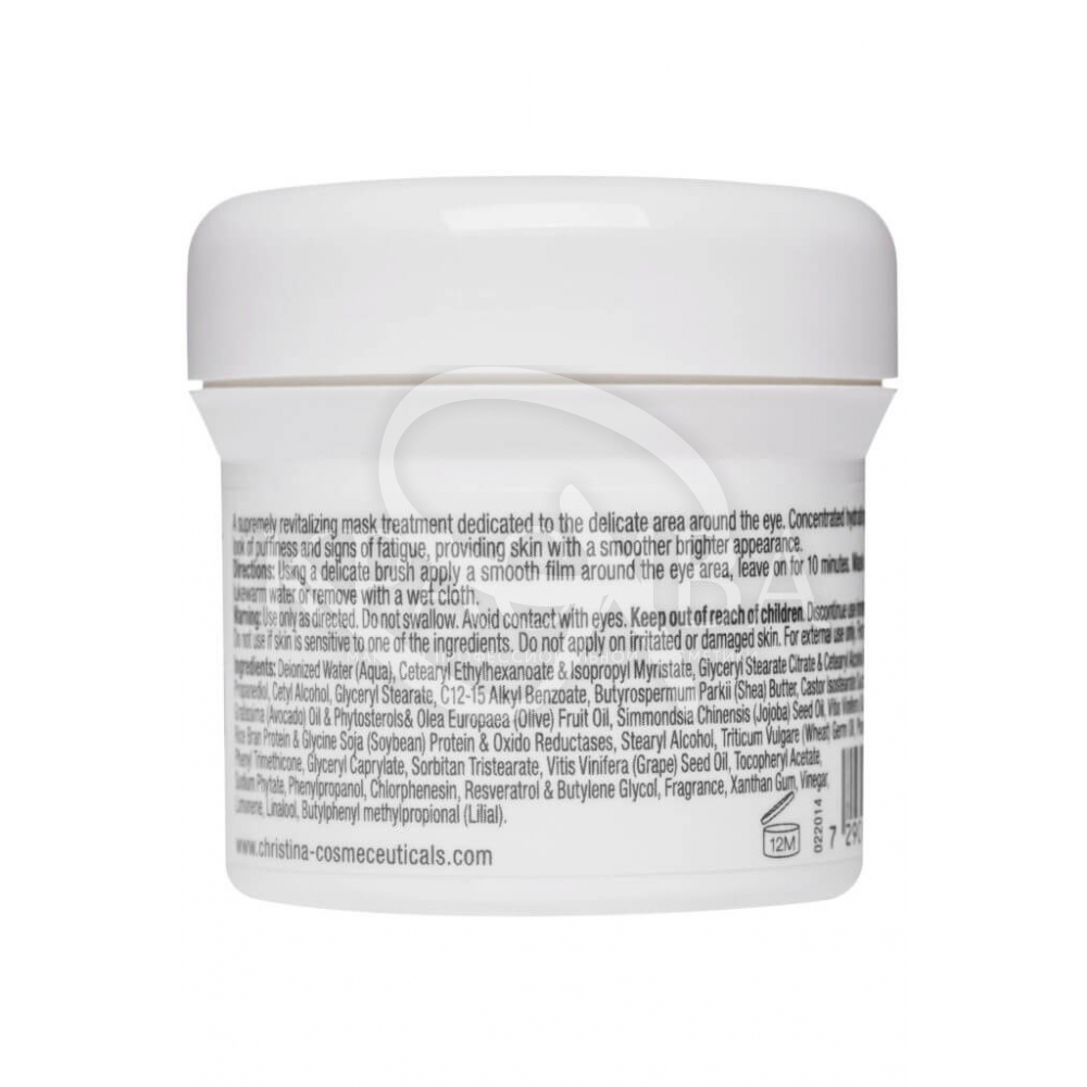Опис: Продукт регенерує чутливу шкіру навколо очей, забезпечує поживними речовинами для усунення зморшок і темних кіл навколо очей, створює захисну плівку для захисту шкіри від несприятливого впливу навколишнього середовища.