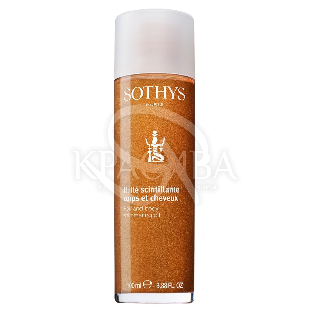Опис: Універсальна олія з шиммерними мікрочастинками Sothys - це ефективний косметичний продукт, збагачений поживними інгредієнтами натурального походження. Він містить цінні олії ши, зародків кукурудзи, соняшника, екстракт розмарину, вітамінний комплекс та поліненасичені жирні кислоти. Засіб має потужні зволожуючі, пом'якшувальні та регенеруючі властивості. Воно підтримує оптимальний гідроліпідний баланс шкіри, інтенсивно насичує її корисними речовинами та розгладжує нерівності мікрорельєфу.