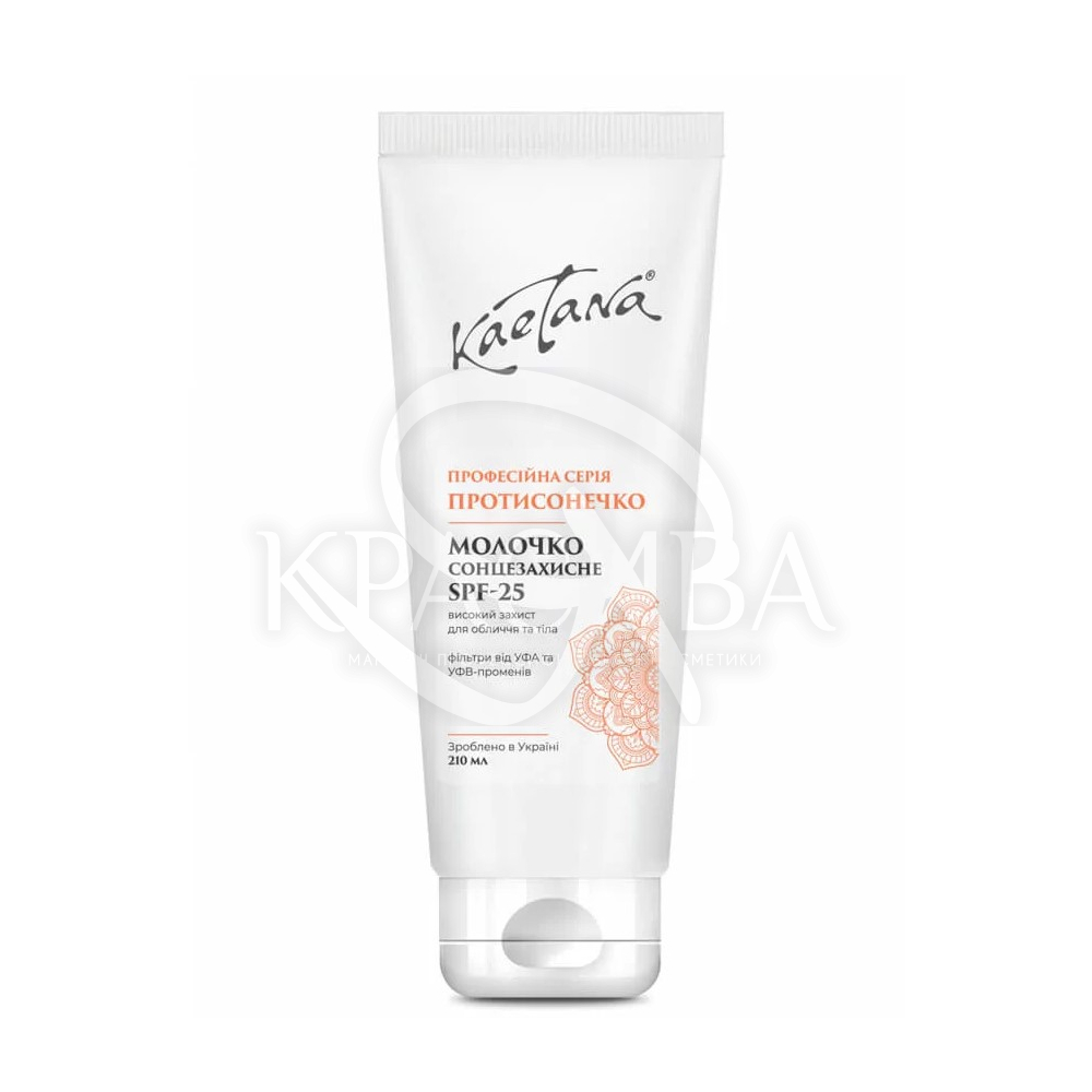 Опис: Сонцезахисне молочко SPF-25 з фактором SPF-25 для повного захисту від УФА та УФВ випромінювання та передчасного старіння; зберігає водно-ліпідний баланс шкіри; має хімічні та фізичні фільтри.