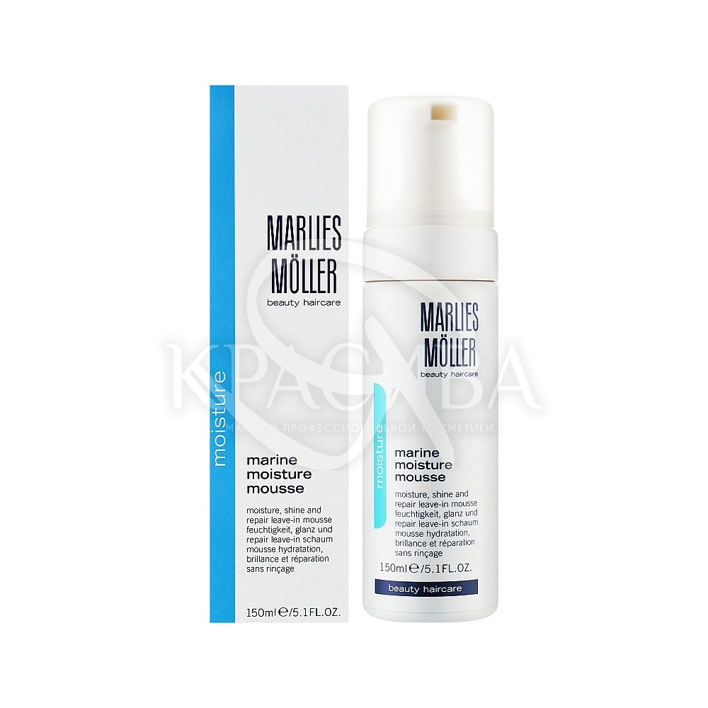 Опис: Інтенсивно зволожуючий мус на основі екстрактів морських водоростей насичує волосся вологою по всій довжині, пом'якшуючи його відновлюючи структуру волосся. Утворює захисний шар проти негативних впливів навколишнього середовища, не обтяжуючи волосся. Надає волоссю шовковистість та блиск. Полегшує укладання та розчісування. Не потребує змивання!