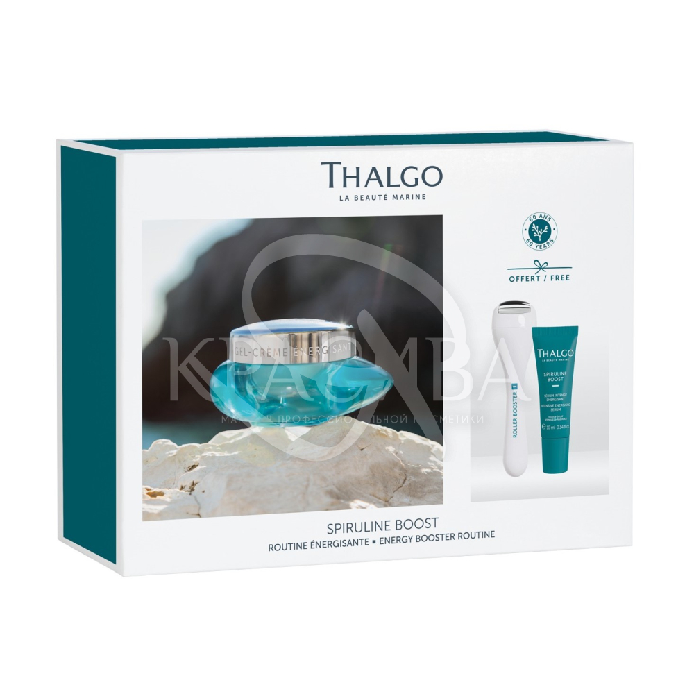 Набір Spiruline Boost – ідеальна процедура, щоб повернути сяйво та розгладити зморшки втомленої шкіри. Свіжий і легкий гель-крем, що розгладжує та повертає сяйво. День за днем колір обличчя стає свіжішим, а ознаки втоми зникають. Ультраконцентрована сироватка розгладжує та освіжає обличчя завдяки унікальному поєднанню спіруліни, посиленої морським магнієм, та натуральним детоксикуючим активним інгредієнтам. Roller Booster – чудовий аксесуар для масажу обличчя, який підтягує шкіру, розгладжує зморшки та омолоджує ефект.