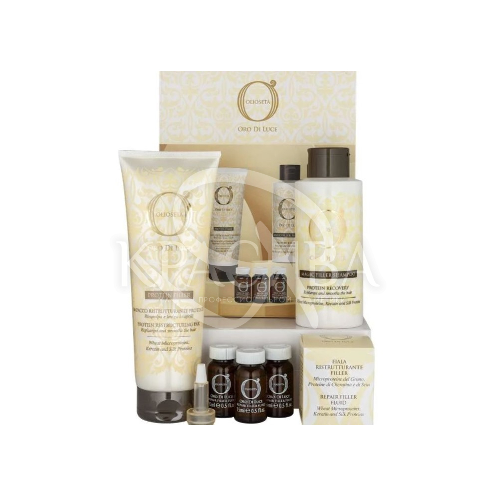 Флюїд, збагачений протеїнами, для зміцнення і надання щільності тьмяному, пошкодженому і тонкому волоссю. Глибоко регенерує волокно, відновлюючи волосся зсередини, забезпечує помітний філлер-ефект. Обволікає волосся захисною плівкою, яка покращує блиск, еластичність та м'якість. Надає волоссю гладкість, позбавляючи пухнастості. До складу входять мікропротеїни пшениці, кератин та шовкові протеїни.