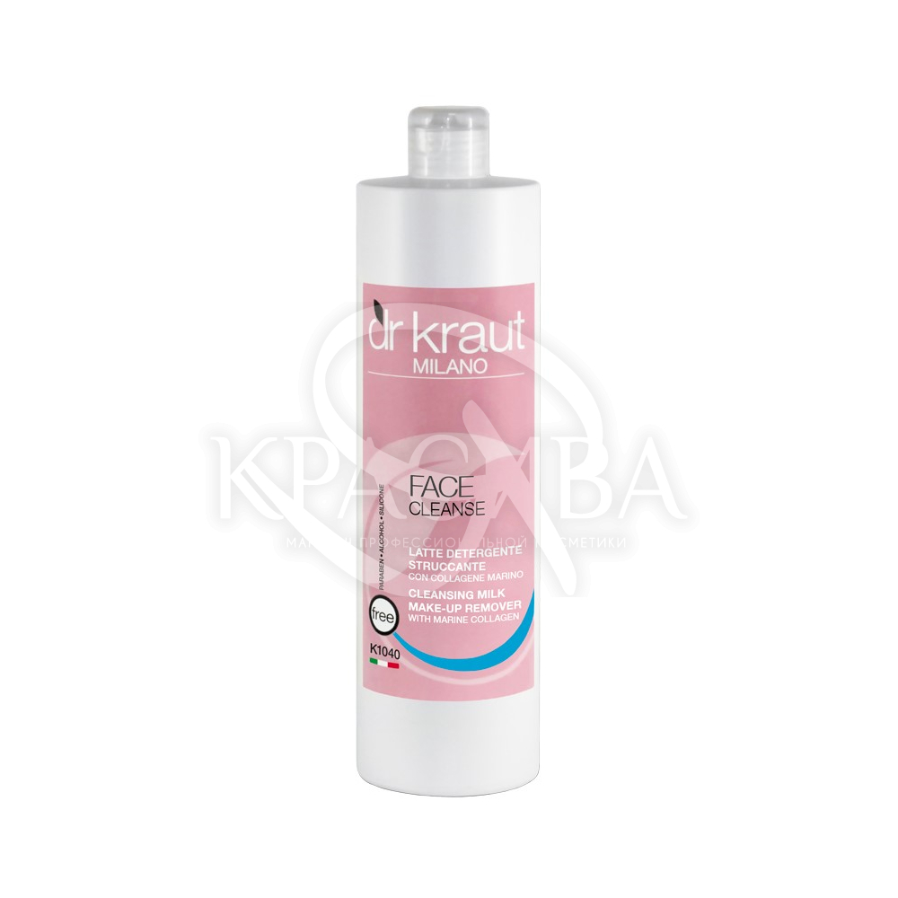 Опис: Dr.Kraut Cleansing milk make-up remover забезпечує швидке делікатне очищення шкіри, видаляючи забруднення з обличчя, шиї, декольте та повік. Рекомендується для зняття макіяжу, у тому числі із зони навколо очей. Має ультратонку консистенцію збитих вершків. У його формулі використовується поєднання двох важливих компонентів (кунжутної олії та вітаміну Е), які разом з морським колагеном надають шкірі свіжості та життєвої сили. Екстракт центел азіатської і рослинний гліцерин забезпечують шкірі м'якість і здоровий вигляд. Приємний та ніжний аромат робить цей продукт затребуваним не тільки у професійному використанні, але й домашньому застосуванні.