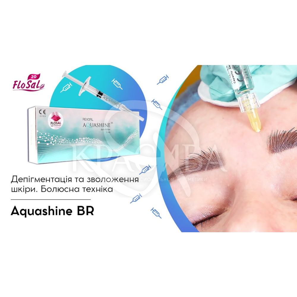 Опис: Aquashine BR – це ін'єкційний ревіталізант, на основі високоефективних біоміметичних пептидів, з вираженою депігментуючою та дермамодулюючою дією. Спеціально підібрані біомеметичні пептиди мають швидку та яскраву освітлювальну дію, вирівнюють тон шкіри, запобігають появі нових пігментних плям шляхом зменшення синтезу меланіну. Наявність у складі блокатора гіалуронідази забезпечує уповільнення та профілактику старіння шкіри.