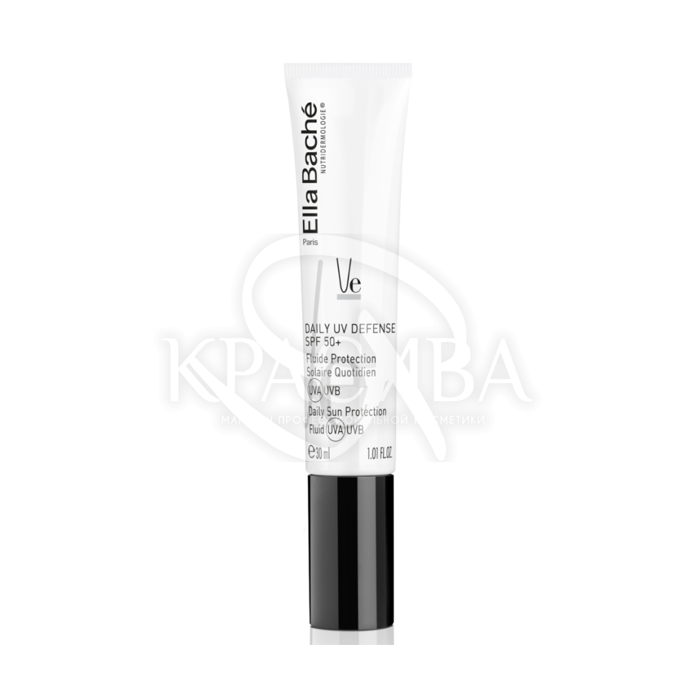 Опис: Щоденний санблок-флюїд Ella Bache Blanc De Teint Daily Uv Defense SPF 50 - високоякісне і найефективніше сонцезахисний засіб, яке подбає про здоров'я вашої шкіри. Активна формула продукту з високим рівнем SPF блокує агресивна дія УФ-променів широкого спектру, оберігаючи епідерміс від фотостаріння і появи пігментних плям. Флюїд є водостійким, тому ви зможете взяти його на відпочинок до морського узбережжя і відправитися в тривалий заплив, що не переживаючи про те, що шкіра обличчя постраждає.