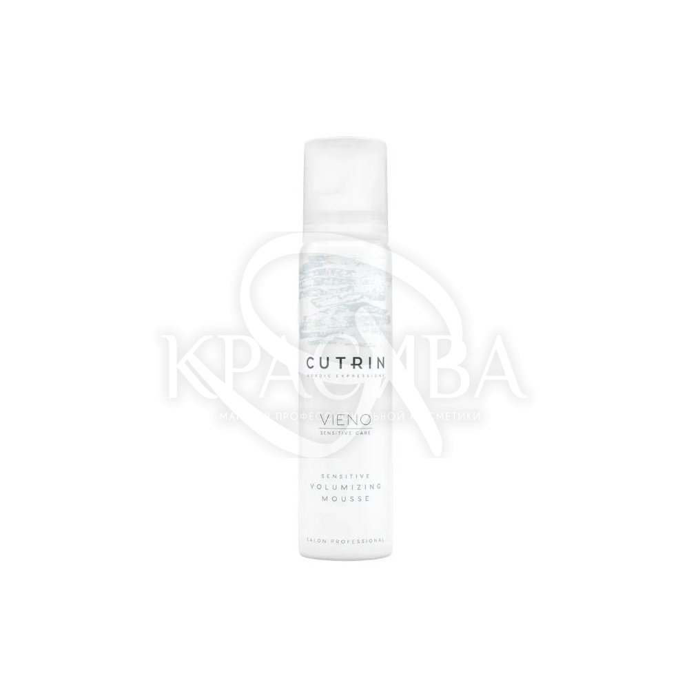 Cutrin Vieno Sensitive Volumizing Mousse - Об'ємний мус для чутливої шкіри голови, 100 мл має цілу низку ключових властивостей, які роблять його незамінним продуктом. Він забезпечує неймовірний об'єм і фіксацію у коренів, даруючи зачісці повноту і стійкість, але при цьому його формула не обтяжує пасма, зберігаючи їхню природну рухливість. Завдяки компонентам, що доглядають у складі, мус дарує волоссю м'якість і блиск, запобігаючи сухості і ламкості, які часто викликаються засобами для фіксації.
