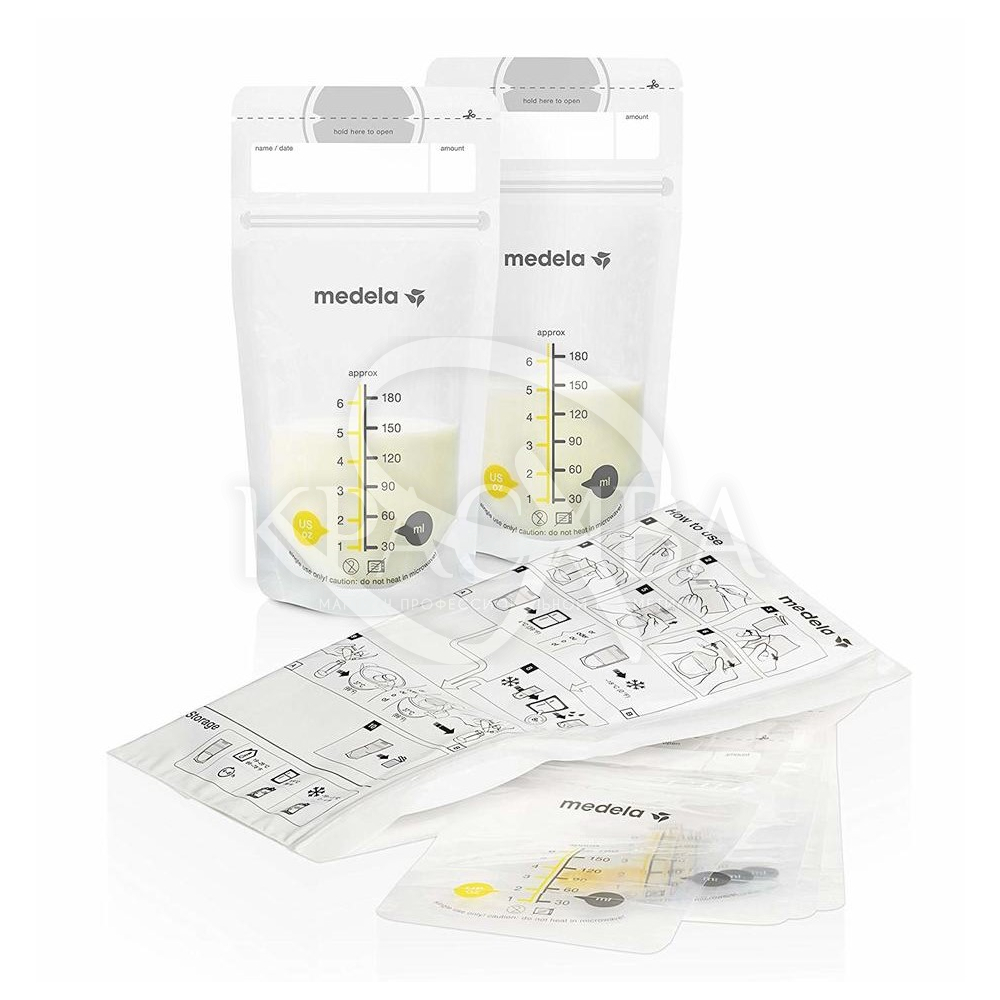Опис: Пакети Medela для зберігання і заморожування грудного молока 25 шт - ідеальні для збору, зберігання і заморожування грудного молока. Молоко захищене від контакту з повітрям і забрудненнями, може зціджуватися безпосередньо в пакет і в ньому ж підігріватися. Завдяки подвійним стінкам пакета, молоко зберігає всі свої якості.