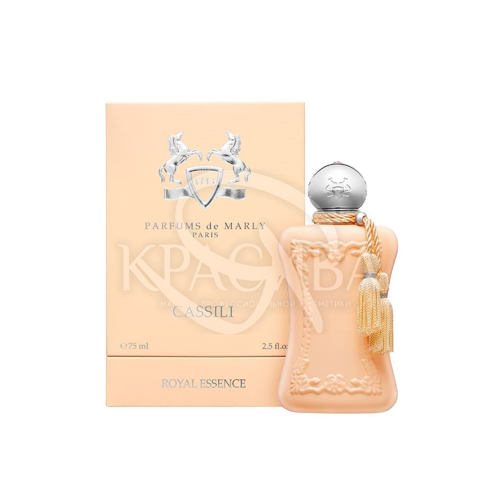 Опис: Cassili – аромат, що відкриває нові грані східноквіткового парфумерного мистецтва. Він привабливий і злегка радісний. Топ-ноти представлені чистими білими квітами, яскравістю та неординарністю смородини, ніжністю травневої троянди. У серці солодко-фруктової композиції з пудровими відтінками звучить нестримний квартет: цитрусово-пряний півтон франжіпані, солодкий запах жовтих суцвіть мімози, молекула петалію з півонією, таємнича і глибока злива. Гордий шлейф складається з тріо з сандалу, ванілі та бобів тонка. Parfums de Marly Cassili - покірний і водночас норовливий аромат.