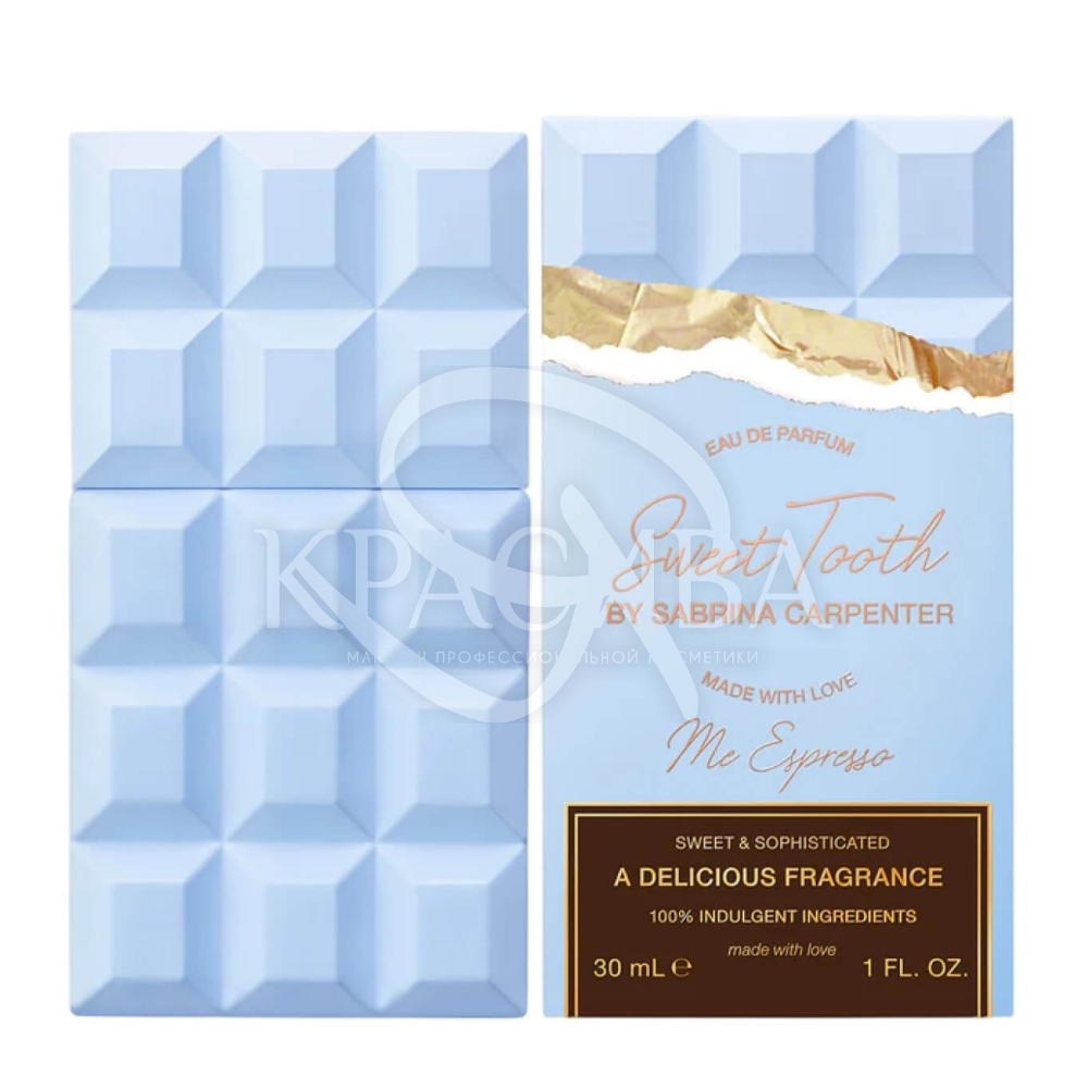 Опис: Sabrina Carpenter Me Espresso Eau De Parfum – солодкий гурманський аромат для жінок, випущений у 2024 році. Парфумер - Gil Clavien. Me Espresso - аромат із гурманської колекції Sweet Tooth, яка поєднує парфуми-десерти. Me Espresso Eau De Parfum – аромат дорогої європейської кав'ярні, з її чарівністю, квітковим декором, настроєм благополуччя та насолоди життям.