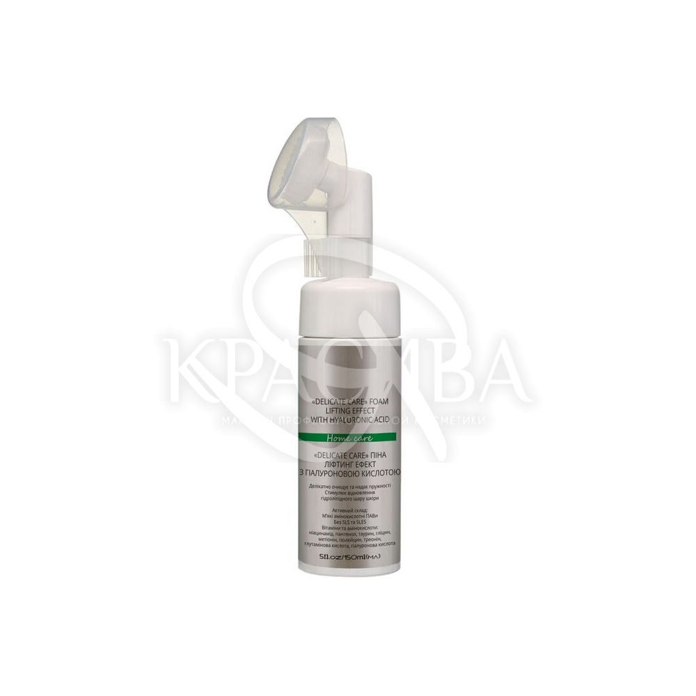 Опис: Піна ліфтинг Delicate Care для очищення сухої, чутливої та зрілої шкіри з активним комплексом амінокислотних м'яких ПАР, вітамінів та амінокислот. Надзвичайно делікатний склад дбайливо та ніжно очищає шкіру, не пересушує та відновлює гідроліпідний баланс шкіри. Зволожуючі компоненти складу: Д-пантенол, амінокислоти: глутамінова, таурин, гліцин, метіонін, ізолейцин, треонін та гіалуронова кислота зволожують, покращують тургор шкіри та надають пружність. Використання піни в комплексному догляді стимулює вироблення нових опорних структур шкіри колагену та еластину, покращує тонус, освітлює та омолоджує шкіру.