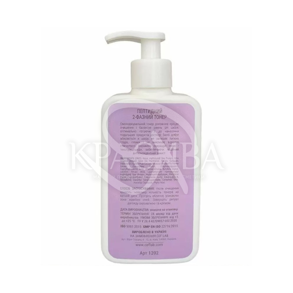 Пептидний 2-фазний тонер для віку 25+ створено з урахуванням особливостей шкіри, що стикається з першими змінами. У цей період вона потребує ретельного та дбайливого догляду, який дозволить зберегти зволоженість, еластичність та свіжість. Наносити Пептидний 2-фазний тонер для віку 25+ рекомендується у фінальній частині доглядових процедур, уникаючи областей навколо очей та рота. Такий засіб допоможе уникнути накопичення жиру, тому що нормалізує його виділення. Разом з цим воно усуває забруднення, пом'якшує шкіру та запобігає появі висипань.Тонік для чутливої шкіри Україна — це гармонійне поєднання ефективності та натурального складу, створене з урахуванням потреб різних типів шкіри. Він м'яко очищає шкіру від залишків макіяжу та забруднень, відновлює водний баланс та готує обличчя до нанесення засобів основного догляду. Тонік часто містить екстракти ромашки, календули, алое віра та інших рослинних компонентів, завдяки яким шкіра стає більш м'якою, свіжою та доглянутою. Регулярне застосування тоніка сприяє підтримці здорового зовнішнього вигляду та покращенню текстури шкіри.