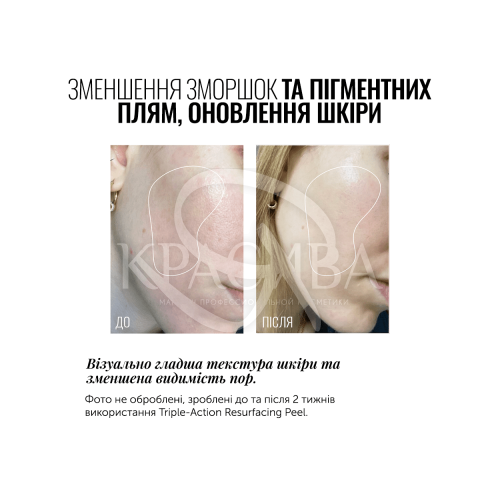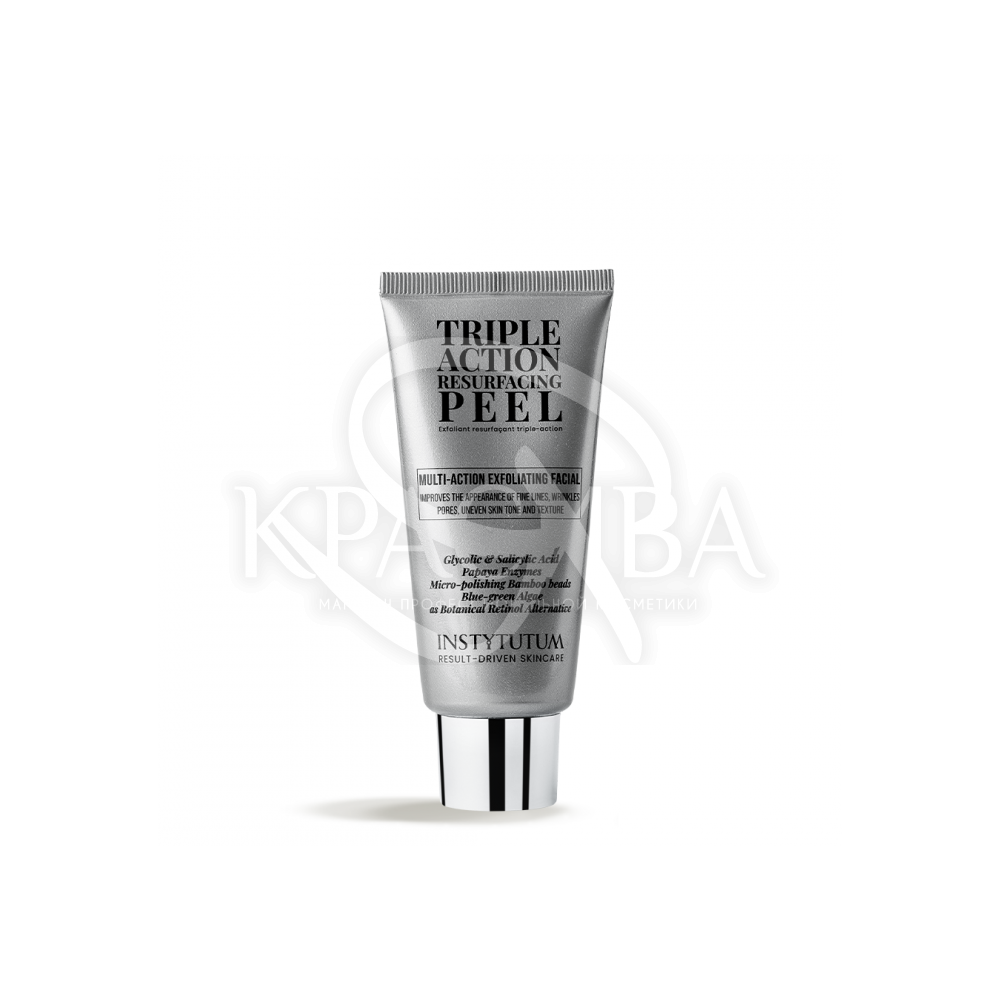 Опис: Пілінг потрійної дії покращує текстуру та тон шкіри. Містить 10% гліколевої та саліцилової кислот, ензими папаї та мікрогранули бамбука для відлущування відмерлих клітин шкіри. Синьо-зелені водорості (рослинний аналог ретиноїдів), гіалуронова кислота, провітамін B5 та вітамін Е зволожують, розгладжують та відновлюють шкіру. Помітно зменшує зморшки та розширені пори, робить пігментні плями менш яскравими, а також оновлює шкіру, роблячи її гладкою та яскравою. Підходить навіть для чутливої шкіри. Можна вагітним.
