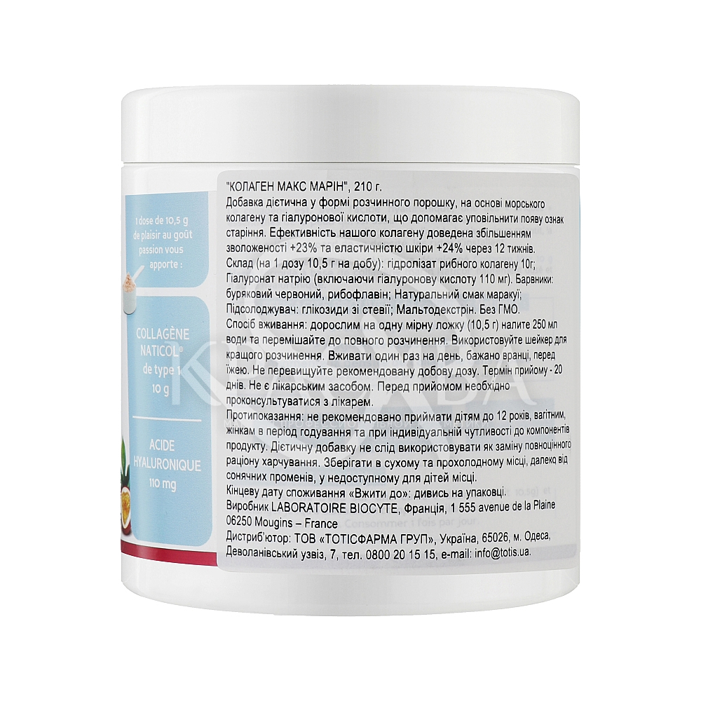 Опис: Добавка дієтична у формі розчинного порошку, на основі морського колагену та гіалуронової кислоти, яка допомагає уповільнити появу ознак старіння. Ефективність колагену доведена збільшенням зволоженості +23% та еластичністю шкіри +24% через 12 тижнів.