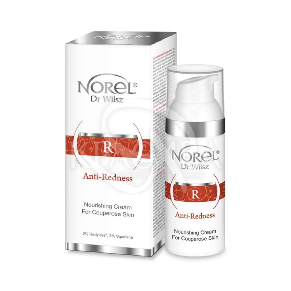 Опис: Крем із насиченою бархатистою текстурою для сухої шкіри з куперозом та розацеа. Зменшує почервоніння шкіри та частоту раптових припливів, викликаних температурою, емоціями та гарячою їжею. При регулярному використанні зміцнює кровоносні судини та запобігає появі нових телеангіектазій, так званих судинних зірочок. Його поживна формула м'яко зволожує, пом'якшує та розгладжує епідерміс, знімає відчуття стягнутості шкіри. Крем регенерує та заспокоює подразнену, гіперреактивну шкіру та захищає її від шкідливого впливу погоди.