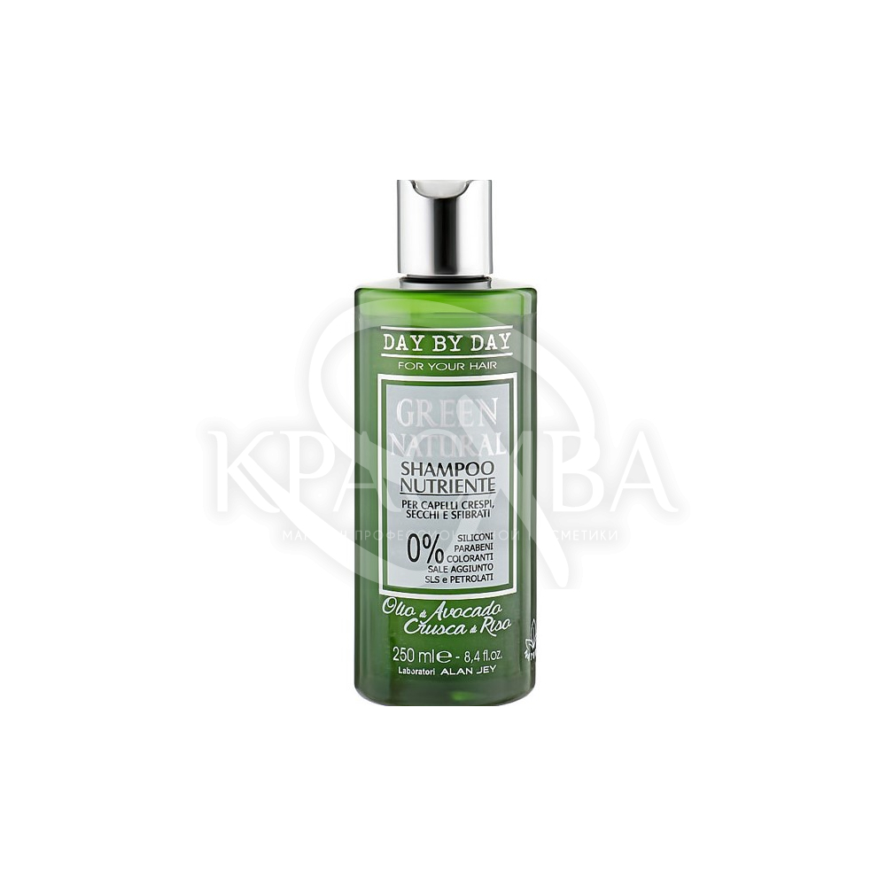 Опис: Шампунь Alan Jey Green Natural Shampoo Nutriente делікатно очищає шкіру голови і локони, усуває бруд, пил, надлишки шкірного сала, прибирає статичну електрику, ідеально підходить для сухих, кучерявих і пошкодженого волосся, робить його шовковистим, слухняними і блискучими. Масло авокадо забезпечує глибоке зволоження пасом і дерми, інтенсивно живить, відновлює структуру клітин, зменшує сухість та лущення, усуває роздратування і запальні процеси, загоює мікротріщини і міні-ранки, бореться з ламкістю і січеться кінчиками, нормалізує рН-баланс епідермісу. Рисове масло має антиоксидантні властивості, нейтралізує активність вільних радикалів, захищає від негативного впливу ультрафіолетового випромінювання, виводить токсини.