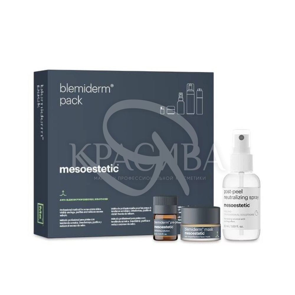 маска blemiderm®: маска проти плям. Поєднує коригувальну дію AHA і BHA з регулюючою дією комплексу блемісом, зменшуючи гіперкератоз, надлишок шкірного сала і видаляючи плями. Містить каолін і сірку, які вирівнюють тон шкіри і мають антибактеріальну дію.