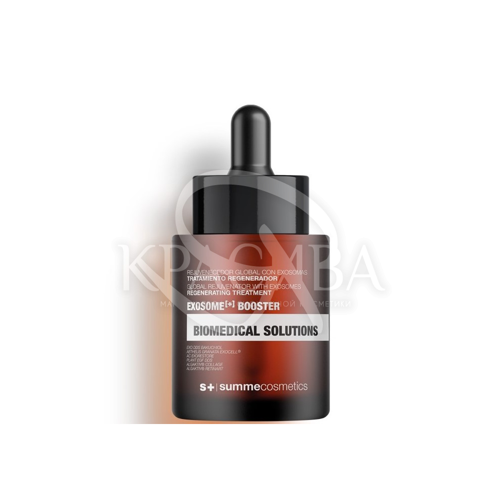 Опис: Концентрований бустер для обличчя, розроблений для стимуляції глибокої регенерації клітин та комплексної боротьби з ознаками старіння (зморшки, обвисання, зневоднення, втома, втрата щільності та сяйво). Його потужна формула, збагачена екзосомами нового покоління, збільшує вироблення колагенових волокон, покращує еластичність і пружність шкіри, посилює захист шкіри від вільних радикалів і діє як засіб, що розгладжує, зберігаючи видимі результати надовго. Для щоденного використання.