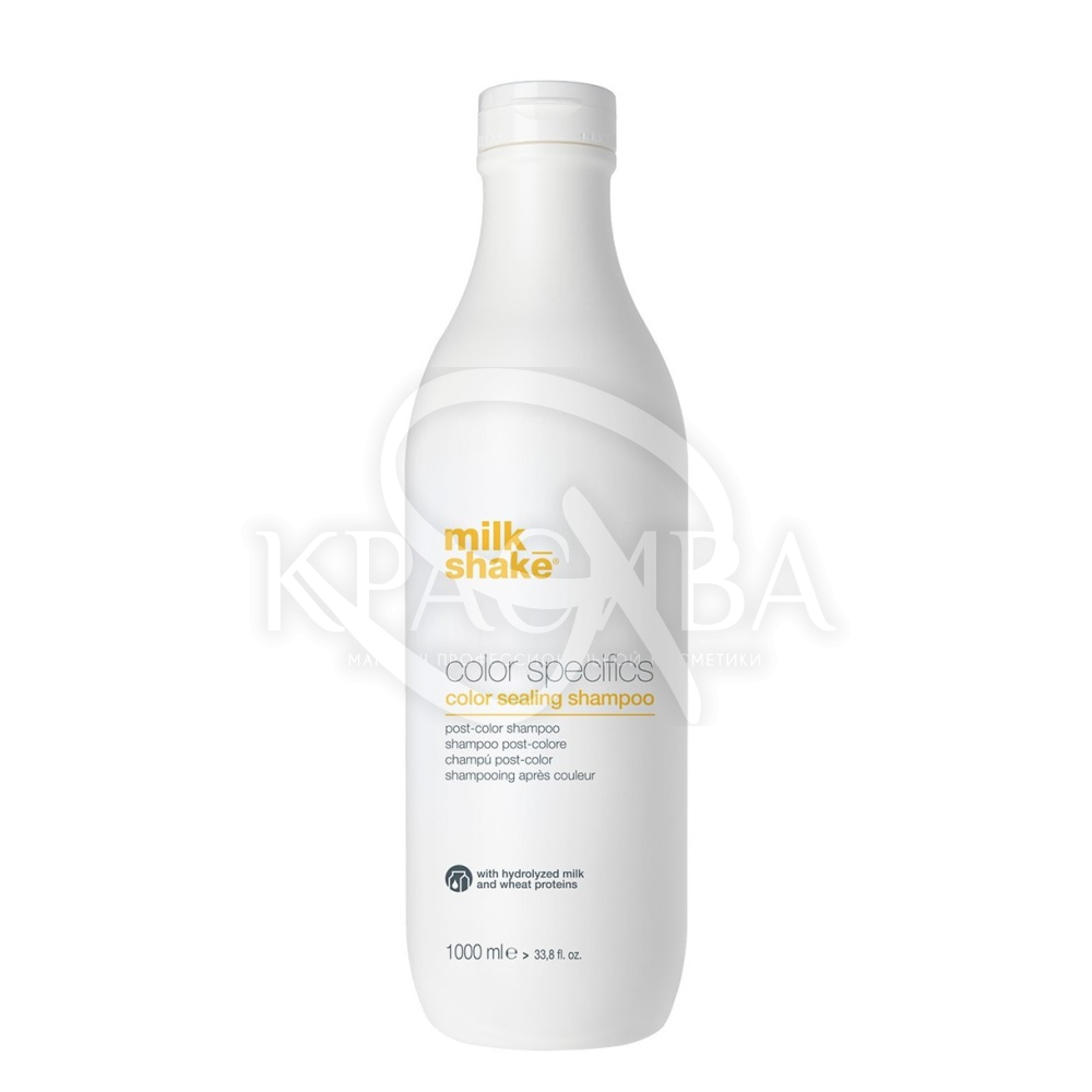 Опис: Шампунь для запечатування кольору milk_shake color specifics очищає та запечатує кольорові пігменти всередині волосся після фарбування для більш тривалого блискучого кольору. Заснований на технології Nano Bio Genius. Поверхнево-активна речовина забезпечує дуже м'яке очищення волосся. Молочний протеїн має сильну інтегративну та кондиціонуючу дію в кортексі волосся, а гліцерин допомагає утримувати волосся зволоженим.