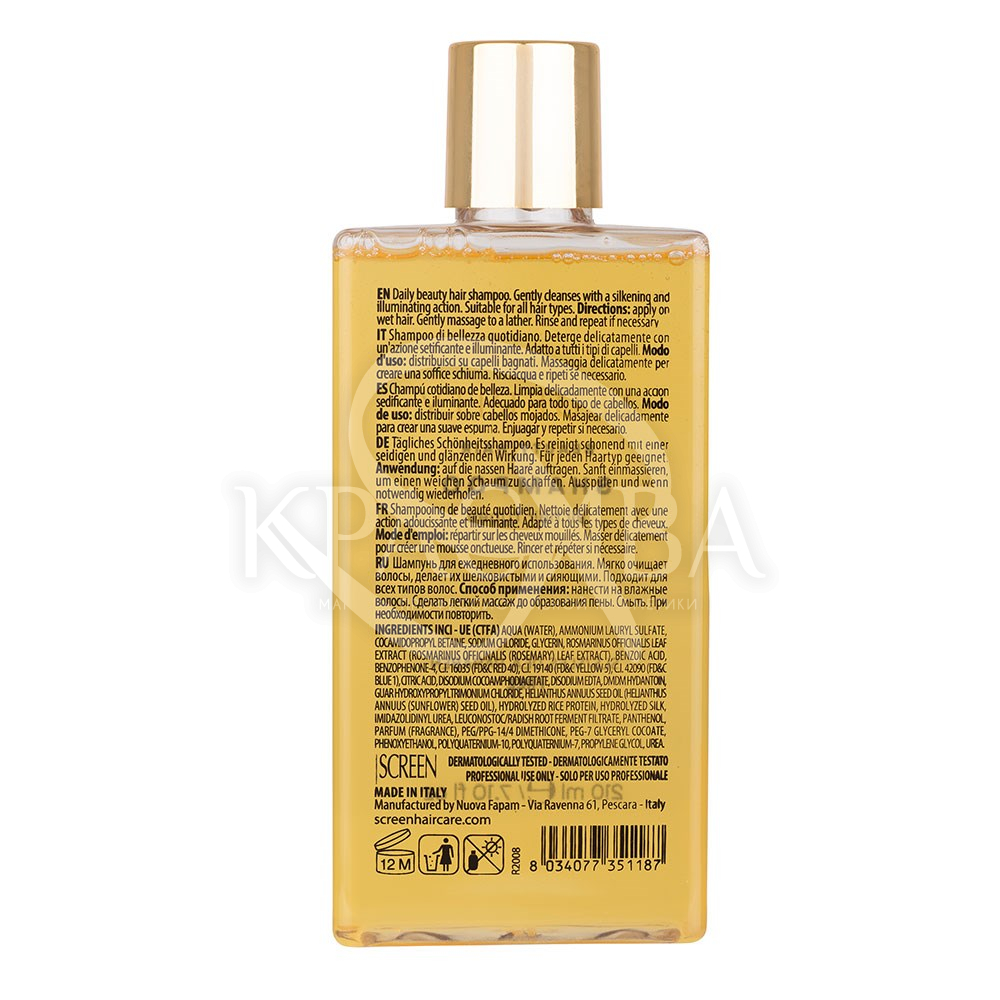 Опис: Активні компоненти шампуню забезпечать шовковисту м'якість і чудовий блиск вашому волоссю! М'яка миюча основа без сульфатів дбайливо, але при цьому ефективно очищає волосся та шкірний покрив голови від різних забруднень. Шампунь чудово відновлює волосся, захищає від впливу високих температур, дарує легкість і сяйво. Після застосування шампуню розчісування та укладання волосся перетворяться на суцільне задоволення!