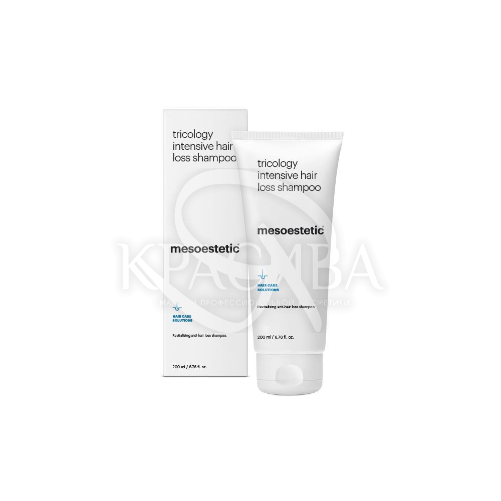 Опис: Інтенсивний шампунь проти випадіння волосся Tricology intensive hair loss shampoo (у складі Сереноа репенс, вітаміни PP, B6, цинк) делікатно очищає, має рН сумісний із рівнем рН шкіри голови, запобігає розвитку андрогенної алопеції у чоловіків та жінок. Стимулює кровообіг, сприяючи проникненню поживних компонентів, зволожує шкіру голови, розгладжує волосся, не викликає подразнення та свербіння.