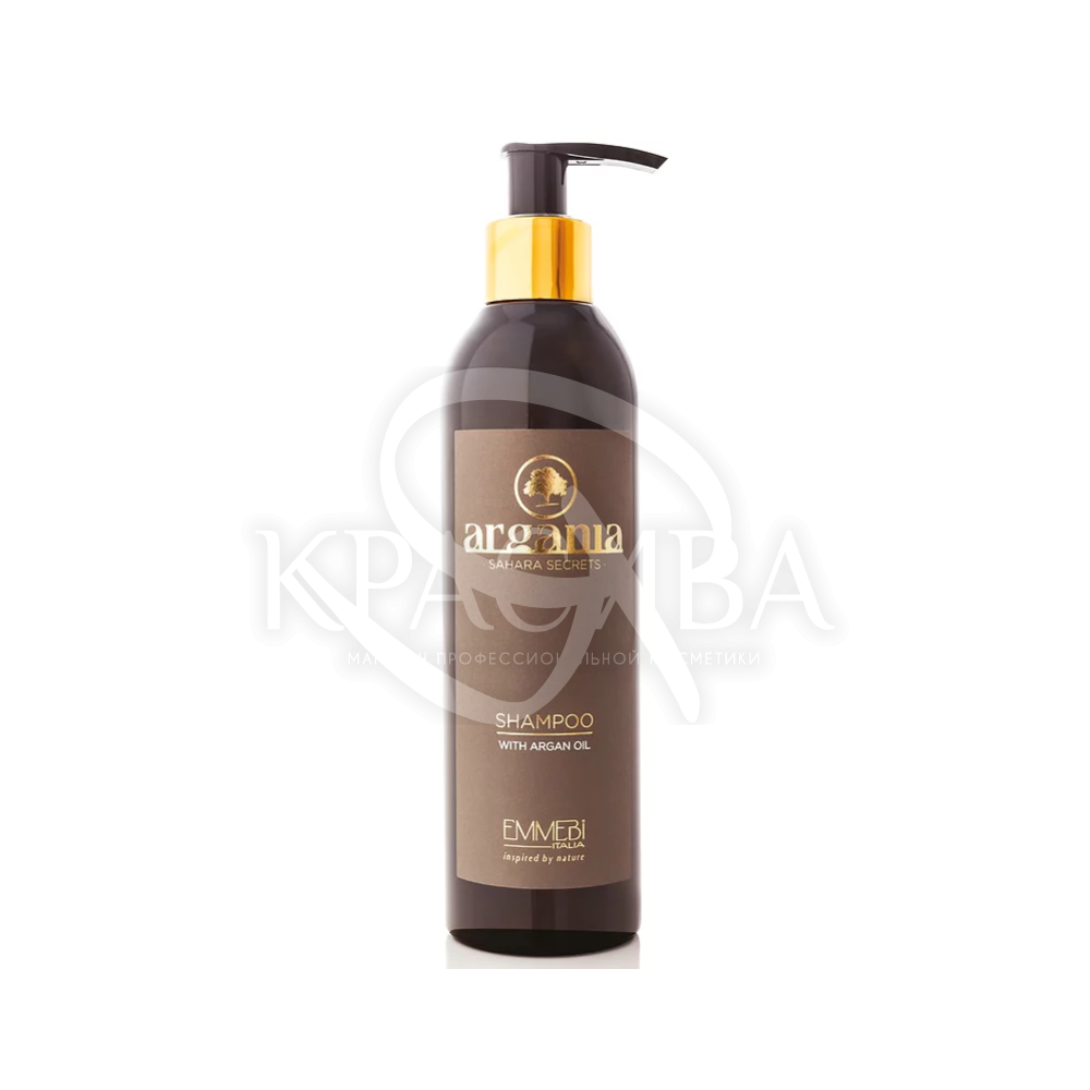 Опис: Сухе, пошкоджене і ламке волосся потребує живлення, очищення та відновлення. Це забезпечує шампунь із аргановим маслом Argania Sahara Secrets від італійського бренду Emmebi Italia. Ідеально збалансований склад, до якого входять олії макадамії, оливи та аргани, шампунь покращить стан волосся і зробить локони більш слухняними. Після застосування пасма будуть захищені від шкідливого впливу ультрафіолету та погодних умов. Арганова олія зробить волосся еластичним і міцним, оливкова — пом'якшить і відновить структуру, а макадамії — зволожить і додасть природного сяйва.