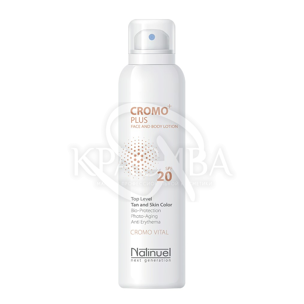 Опис: Спрей для обличчя-тіла – захист від UV променів SPF 20 – біоцевтичний продукт останнього покоління, здатний взаємодіяти абсолютно новим способом на вплив УФ на шкіру. Призначений щоб перешкоджати фотостарінню, попереджати еритеми (почервоніння шкіри) і водночас оновлювати колір шкіри та досягати максимального рівня у всіх естетичних параметрах засмаги: рівномірності, яскравості та якості. Багатофункціональність продукту дозволяє використовувати його в будь-який час року, як у горах, так і біля моря, для досягнення естетично бездоганного, повного життя, біологічно здорової та молодої шкіри.