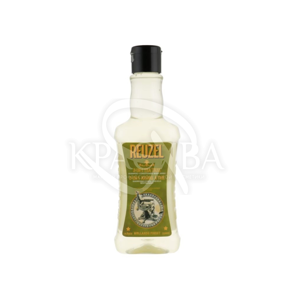 Опис: Засіб 3-в-1 від Reuzel з екстрактом чайного дерева відмінно очищає шкіру голови і тіла. У ньому об'єдналися шампунь, кондиціонер та гель для душу. Підійде тим, хто не любить багато баночок, то любить комплексний та якісний догляд. Ідеально збалансований склад живить шкіру. Також засіб підходить для щоденного використання.