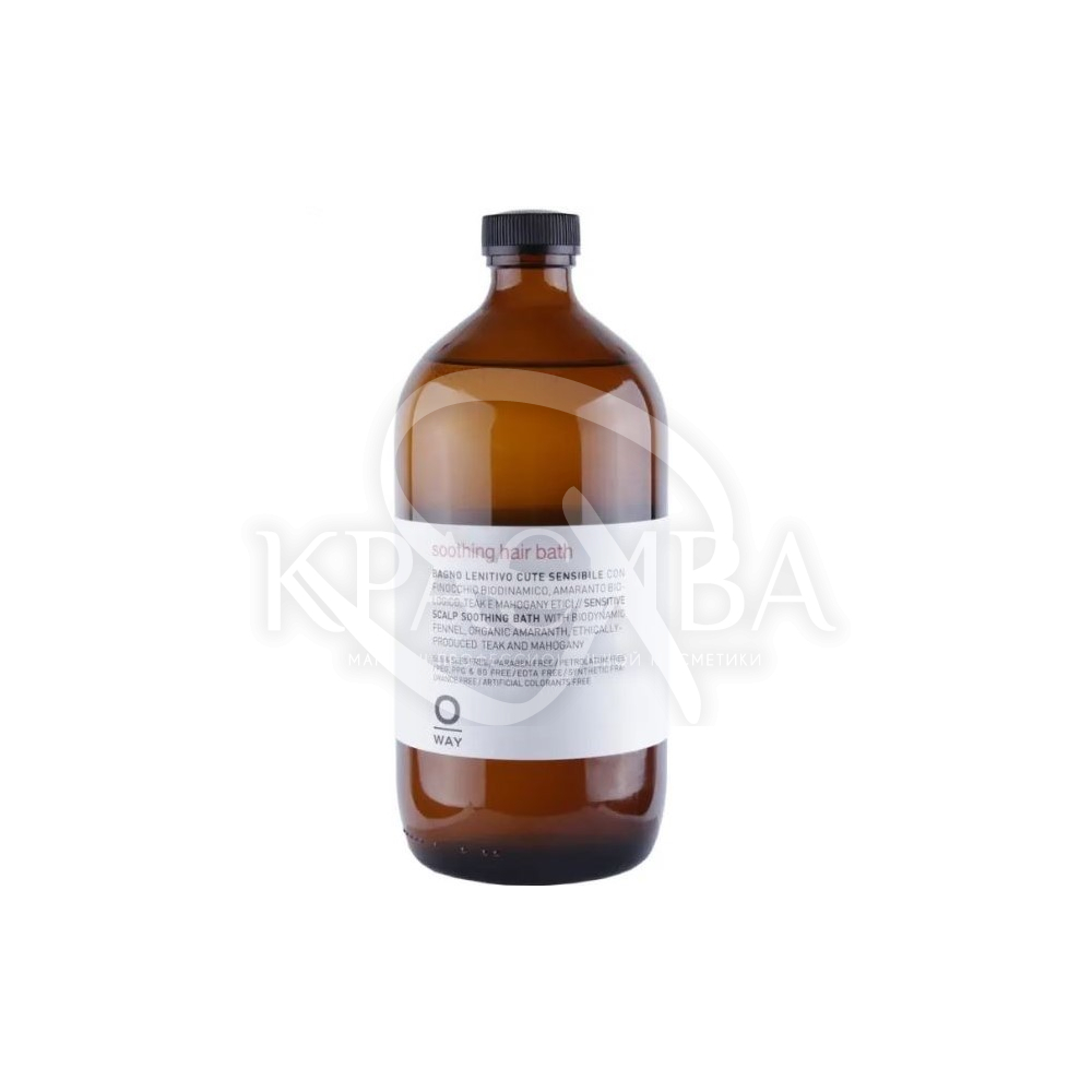 Головним активним інгредієнтом шампуню Oway Soothing Hair Bath є біологічно активний фенхель, який містить вітаміни та мінерали, що розгладжують структуру волосся. Органічний амарант сприяє глибокому харчуванню, а лікарський тик відповідає за тонізування та відновлення природного балансу клітин епідермісу. Шампунь чудово очищає волосся від забруднень, виводить токсини, нейтралізує вплив вільних радикалів, ультрафіолету та інших зовнішніх факторів.