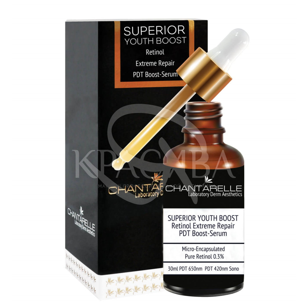 PDT Boost-Сироватка з ретинолом для потужного оновлення клітин та відновлення структури шкіри. Він містить стабільну форму чистого ретинолу 0,3% (вітамін А 233310 МО/г), укладену в унікальні мікрокапсули з дуже дрібними частинками, які вивільняються при нанесенні легким масажем. Має комплексну регенеруючу та омолоджуючу дію. Стимулює проліферацію епідермісу та дерми, що призводить до інтенсивного оновлення клітин та реконструкції шкіри.