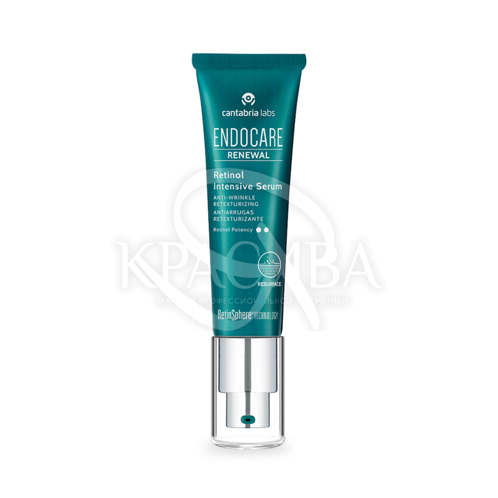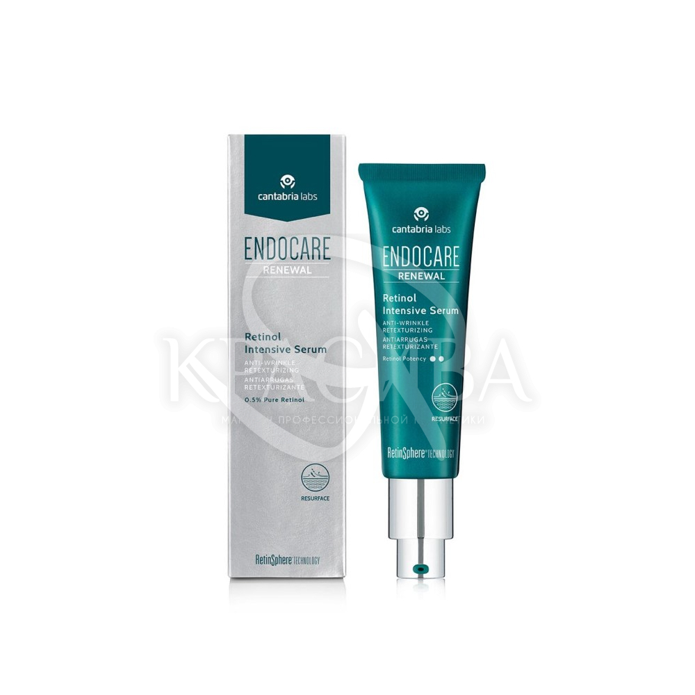 Сироватка Endocare Renewal Retinol Serum містить такі ключові активні інгредієнти: 0,5% чистого ретинолу у мікроспонжах; Технологія RetinSphere; Гіалуронова кислота; ніацинамід; Бісаболол; Зволожуючі та відновлювальні інгредієнти; Інтенсивно покращує глобальні ознаки старіння шкіри.