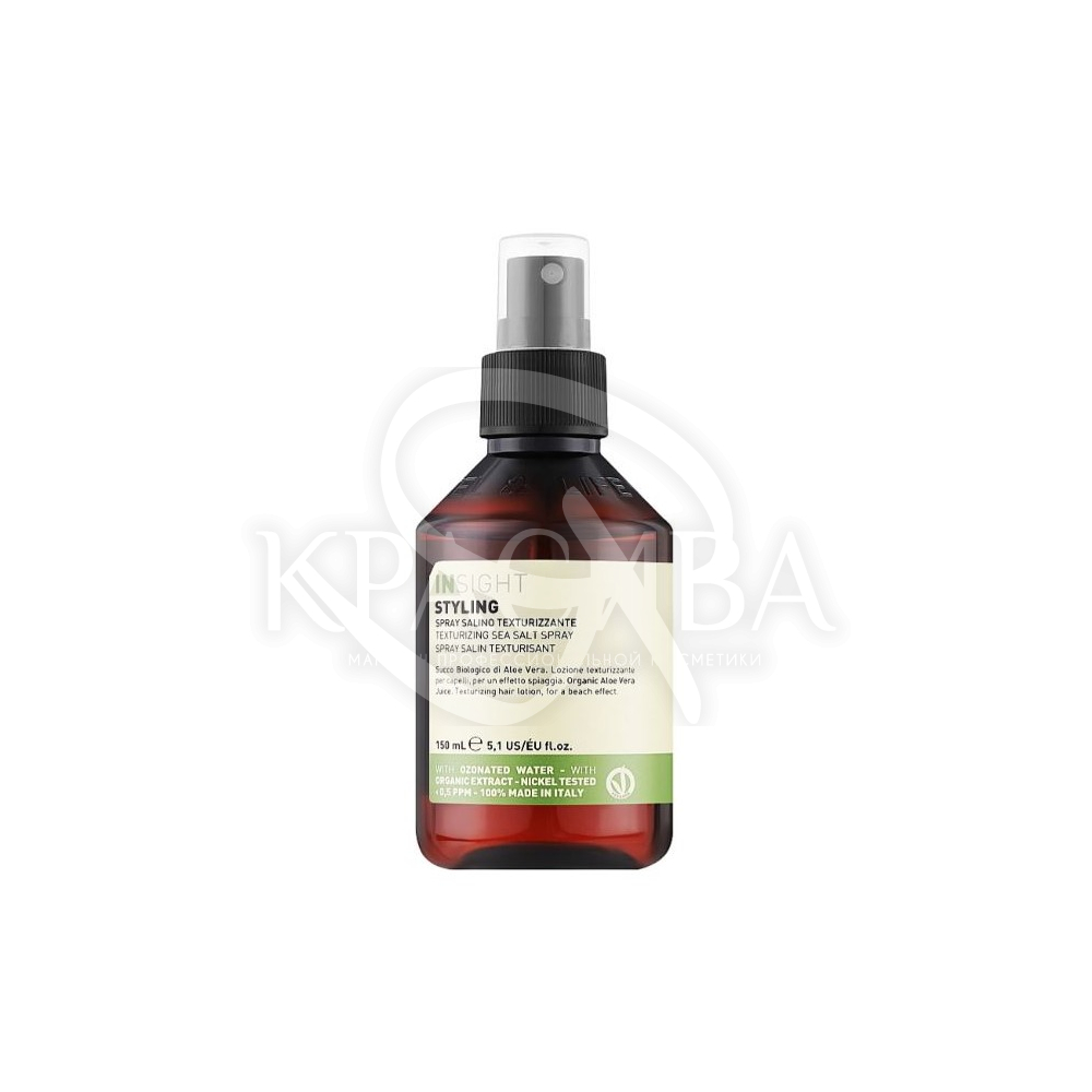Опис: За допомогою текстуруючого спрею від бренду Insight вам вдасться повернутися в теплі літні дні, незважаючи на сезон і погоду за вікном. Texturing Sea Salt Spray позбавляє пасма від пористості, пухнастості, інших ознак дегідратації, наповнюючи їх живильними мікроелементами, прикрашаючи досконалим сяйвом. Бьюті-продукт підтримує прикореневий об'єм, полегшує розчісування та надає впевненості у бездоганності ранкового укладання.