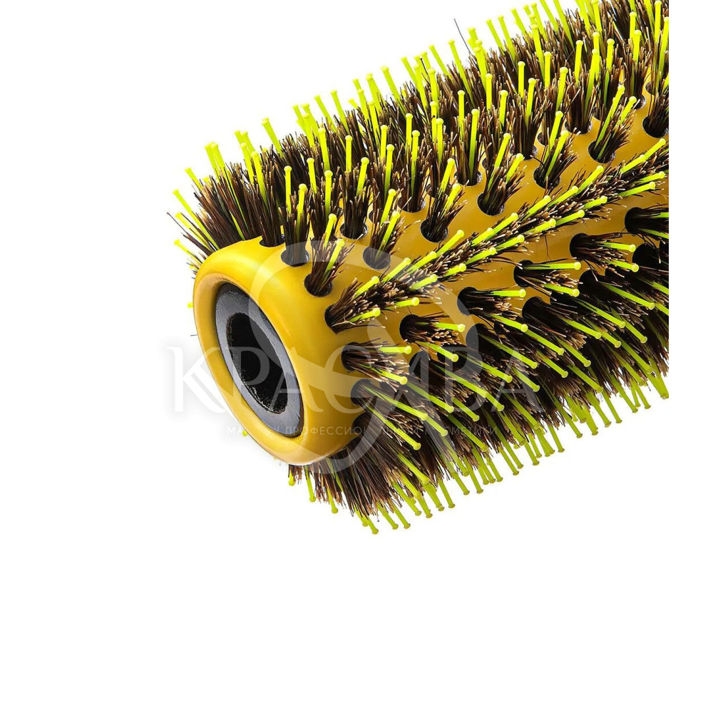 Опис: Алюмінієвий барабан гребінця нагрівається до температури повітряного потоку фена, а дерев'яний внутрішній шар служить термоізоляцією. Завдяки накопиченню теплого повітря браш набуває властивостей плойки. Турмалінове покриття алюмінієвого барабана забезпечує іонізуючий антистатичний ефект.