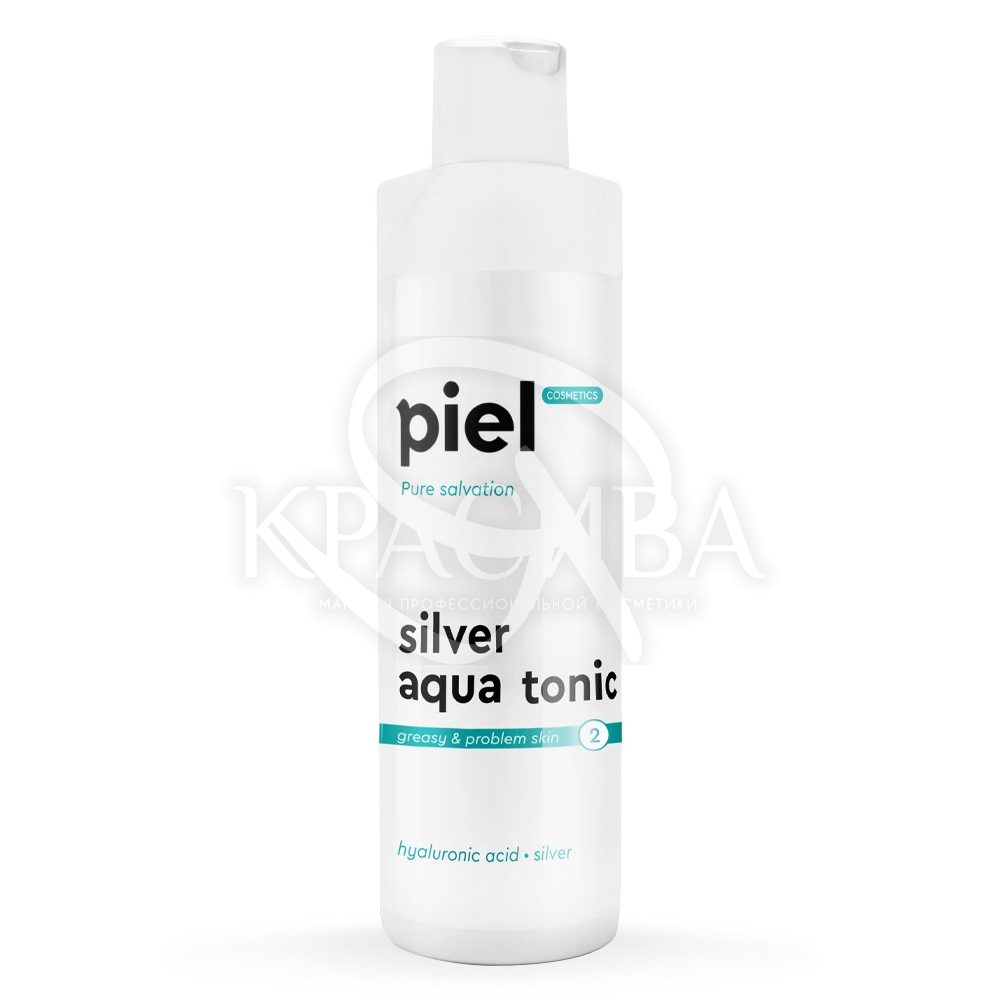 Опис: Тонік для зволоження нормальної та комбінованої шкіри Piel Silver Aqua Tonic інтенсивно зволожує, пом'якшує та заспокоює. Відновлює pH-баланс. Стимулює процеси регенерації. Має протизапальний ефект. Покращує мікроциркуляцію та захисні функції шкіри. Ідеальна основа під засоби основного догляду чи макіяж. Гіалуронова кислота інтенсивно зволожує та пом'якшує тканини. Створює на поверхні епідермісу захисну вологоутримуючу мантію, запобігає випаровуванню вологи з клітин і захищає від агресивного впливу зовнішніх факторів. Підвищує еластичність, щільність та пружність шкіри. Наносрібло стимулює регенерацію шкіри та її активне загоєння та відновлення.
