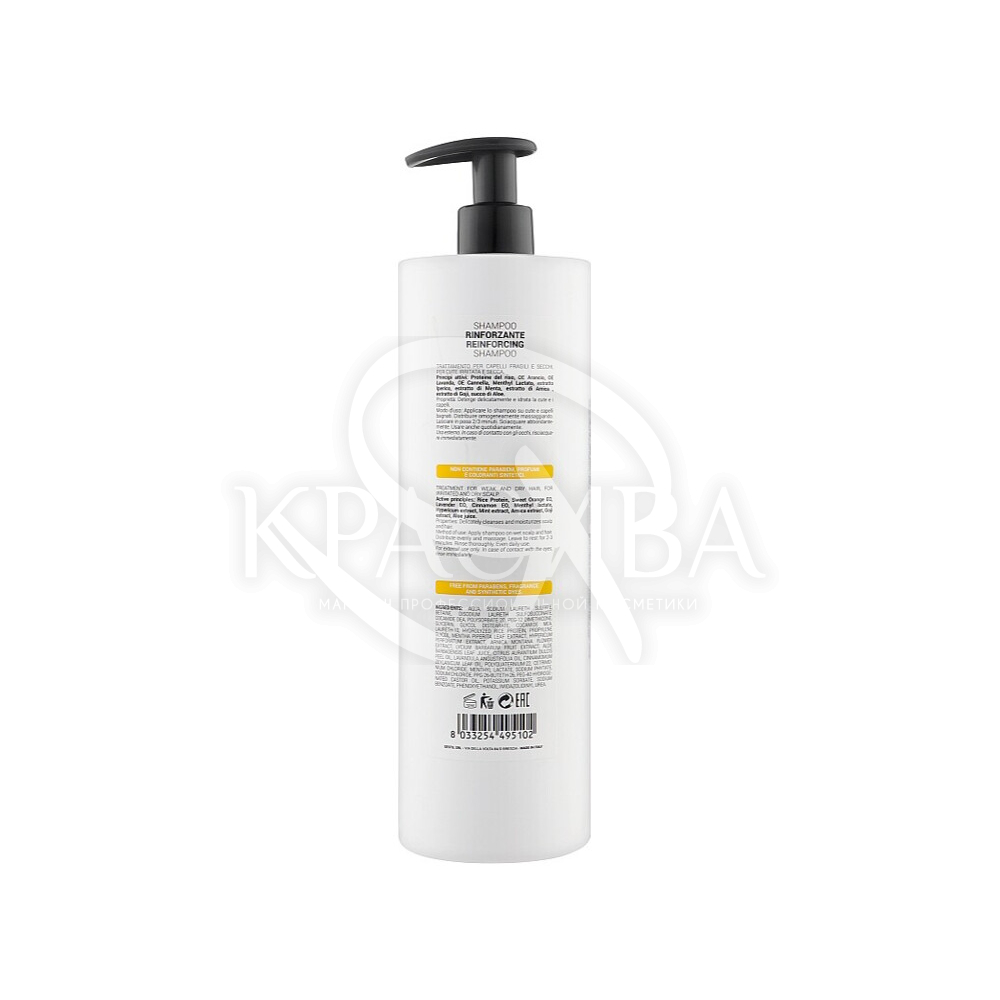 Опис: Зміцнюючий та зволожуючий шампунь для ламкого волосся з вмістом екстракту годжі, рисового білка, екстракту арніки, соку алое, ефірних олій апельсину та лаванди.