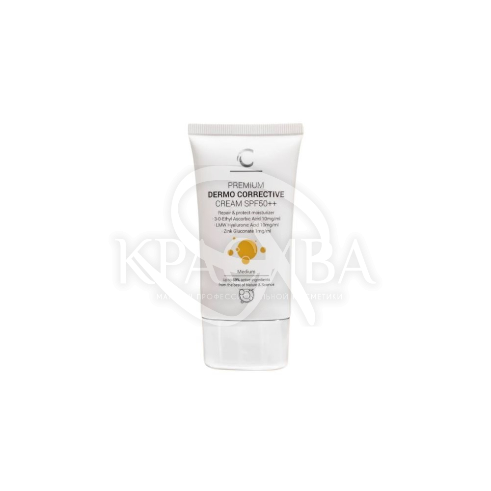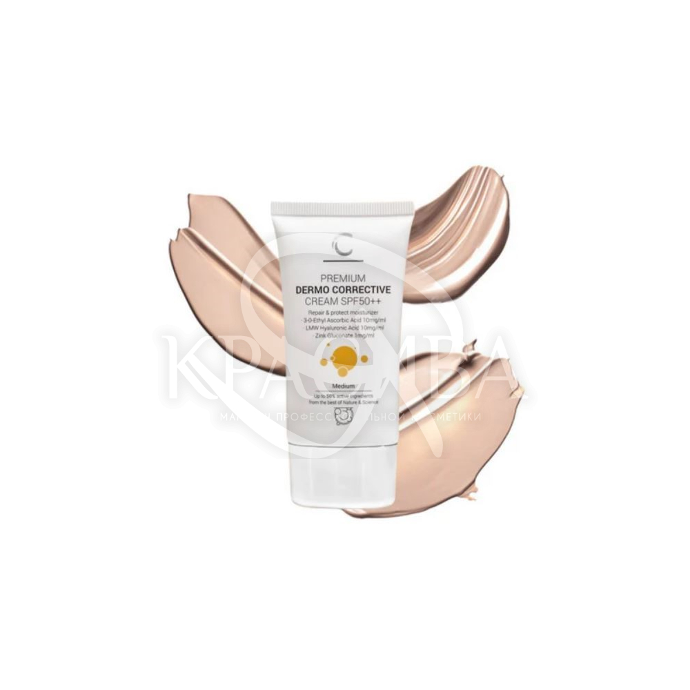 Опис: Мультифункціональний крем з пігментами, що підлаштовуються, що робить його універсальним за своїми властивостями. Сприяє покращенню тону шкіри, вирівнює колір обличчя та продовжує природну молодість шкіри. Крем DERMO PREMIUM одночасно є праймером, м'якою основою, денним кремом та кремом із сонцезахисним фактором SPF 50. Він глибоко зволожує шкіру, зменшуючи видимі ознаки передчасного старіння. Коригуючий крем забезпечує захист, швидке відновлення та регенерацію подразненої шкіри після різних естетичних процедур.