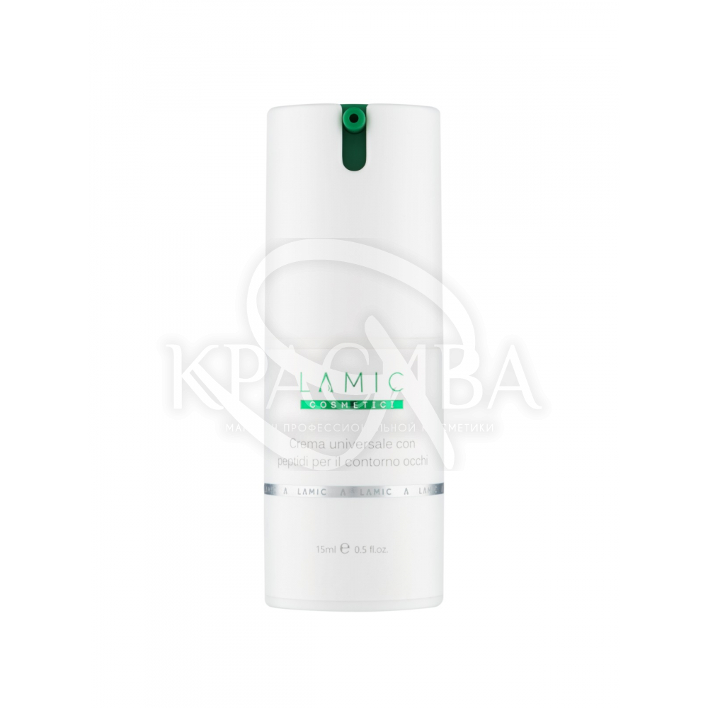 Опис: Універсальний крем з пептидами для контуру очей покращує рельєф шкіри в пери орбітальній зоні, зменшує глибину зморшок. Ущільнює тонку шкіру навколо очей, робить її пружною та еластичною. Рекомендується також для профілактики передчасного старіння шкіри.