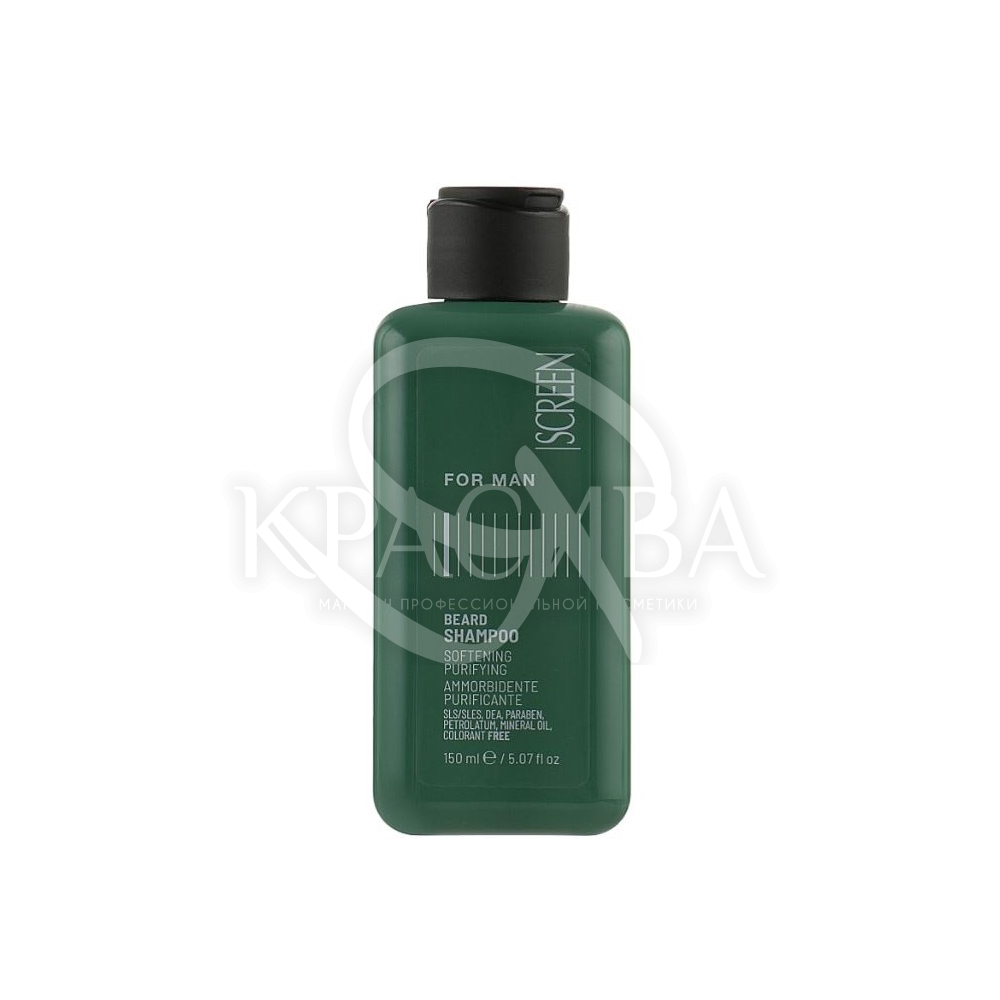 Опис: Спеціальний шампунь для бороди Screen For Man розроблений фахівцями для ефективного та м'якого очищення, зволоження та надання волоскам блиску. Засіб має потужну зміцнюючу дію, перешкоджаючи випаданню волосся та тьмянінню бороди.