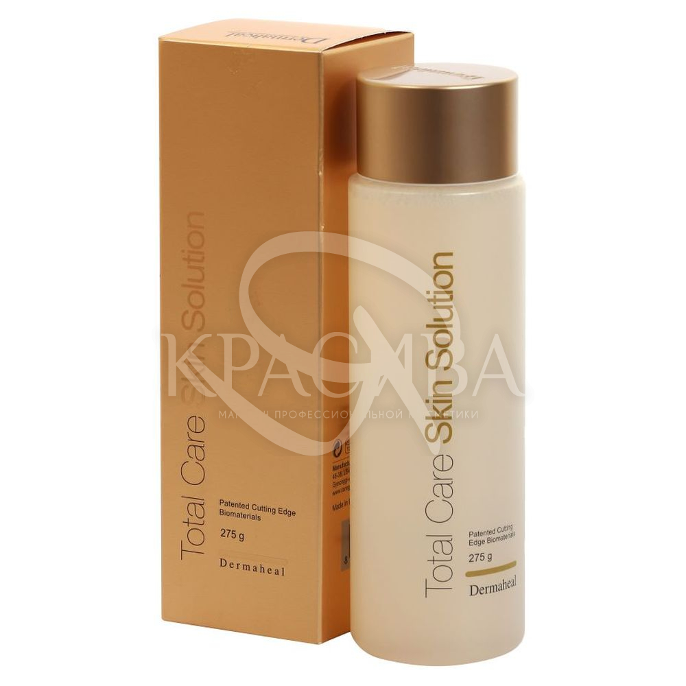Комплекс очисних компонентів тоніка Dermaheal Total Care Skin Solution добре знімає різного роду забруднення зі шкіри, а біомететичні пептиди сприяють зміцненню судин, стимулюють поділ клітин, вирівнюють колір шкіри, зміцнюючи місцевий імунітет.
