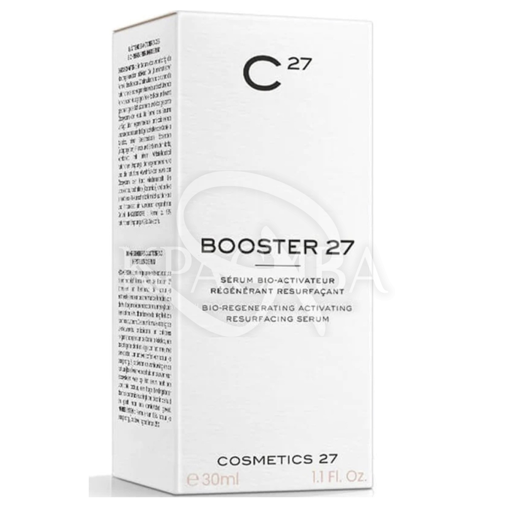 Сироватка Booster 27 від Cosmetics 27 активує оновлення шкіри, стимулює природні механізми саморегенерації та самозахисту, оптимізує бар'єрну функцію шкіри, захищає цілісність та баланс мікробіом. Booster 27 регенерує колаген, реструктурує гідроліпідний бар'єр, мінімізує розширені пори. Ідеальний продукт для шкіри, яка щодня піддається екологічному стресу та потребує регенерації.