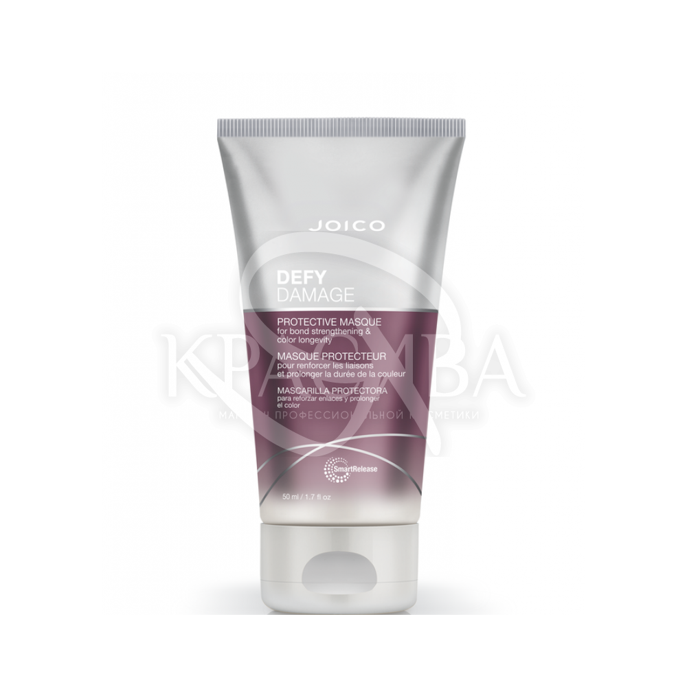 Опис: Захисна маска для відновлення дисульфідних зв'язків та захисту кольору Joico Defy Damage Protective Masque входить до переліку брендових американських засобів, призначених для інтенсивного, але водночас делікатного догляду за волоссям. Вона не тільки повертає локонам втрачену вологу, а й покращує їхню еластичність, при цьому не додаючи ваги. Результатом використання цього косметичного продукту стають гладкі, м'які та блискучі пасма, що мають здоровіший вигляд.