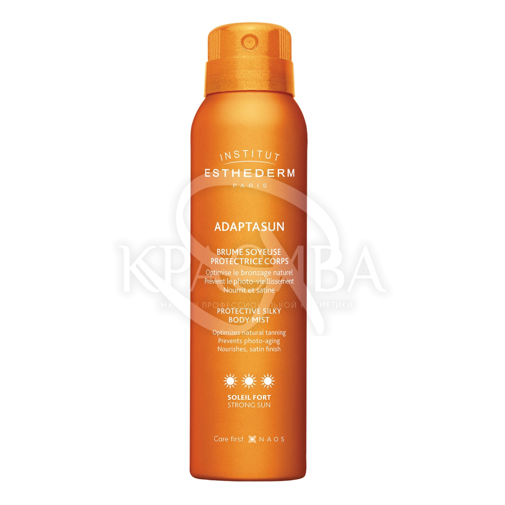 Опис: Оптимізує всі стадії засмаги (природного захисту шкіри). Завдяки оновленій формулі та більшій дисперсності Silky Body Mist Adaptasun розподіляється більш рівномірно. Містить як зовнішній (UVA- і UVB-фільтри), так і внутрішній (патент GCP) захист.
