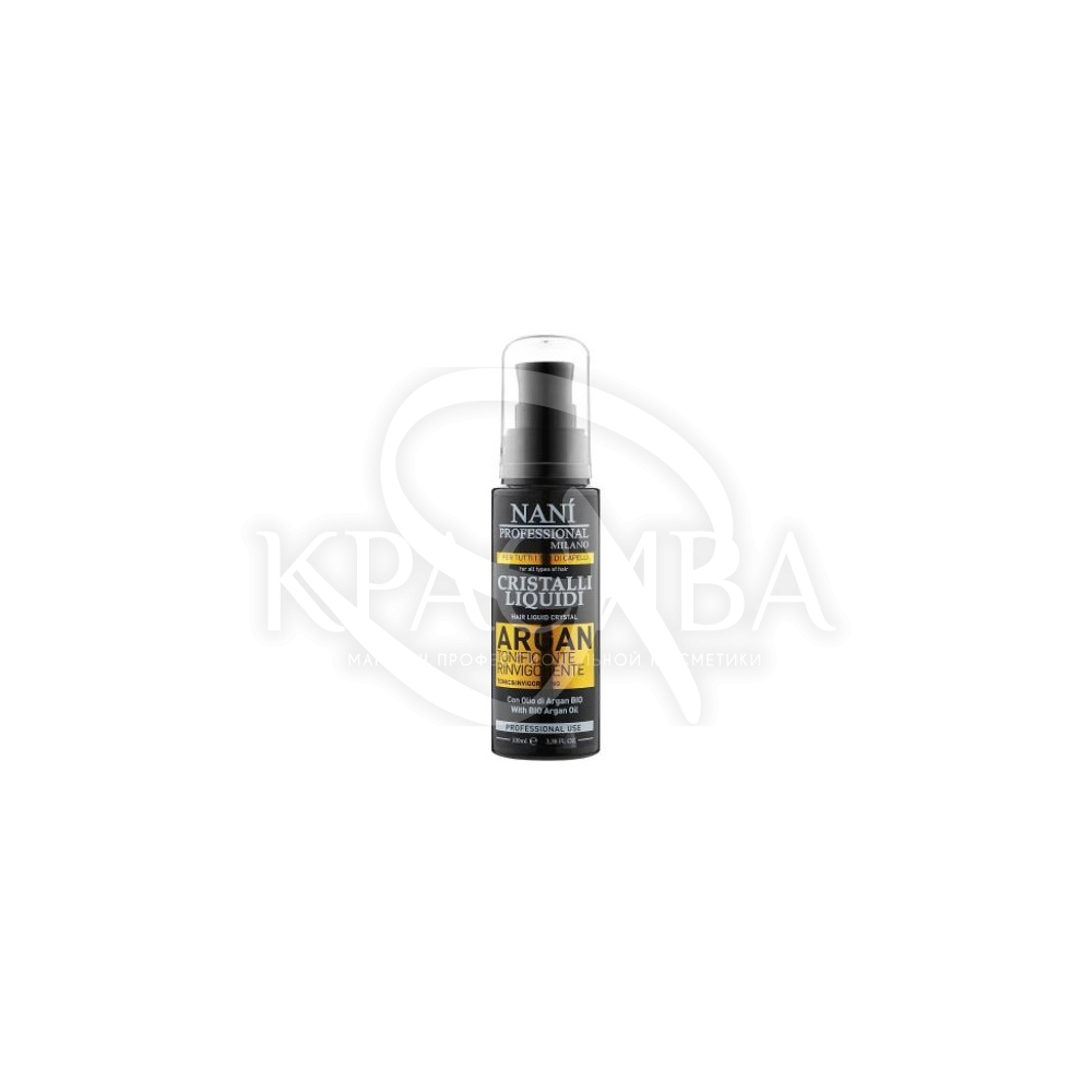 Опис: Рідкі кристали – це ультра поживний засіб для догляду за волоссям, який можна наносити як на вологе, так і на сухе волосся. Воно містить вітаміни та корисні мікроелементи, які проникають глибоко у структуру волосся та мінімізує ризики пошкодження. Крім того, рідкі кристали заповнюють собою порожнечі та пори волосся, роблячи пасма гладкими, щільними і сильними. Liquids With Invigorating Toning Argan від бренду Nanì Professional Milano стануть вдалим доповненням до вашої доглядової рутини і забезпечить результат помітним вже після першого використання.