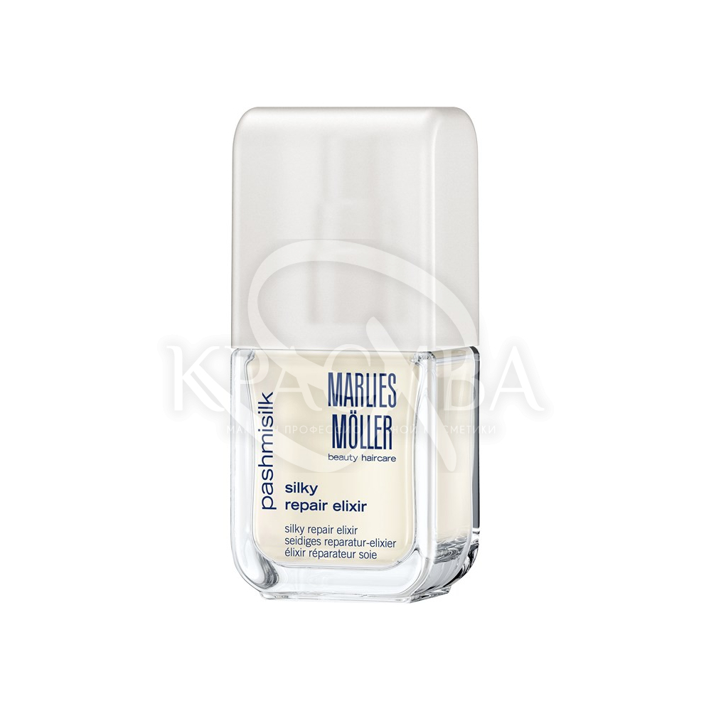 Описание: Роскошный, активный эликсир с уникальным комплексом кашемира и шелка (Pashmina-Silk-Complex). Благодаря богатому составу активных компонентов (коллаген, кератин, протеины шелка, эластин) восстанавливает структуру поврежденных волос, питает, защищает их. Предотвращает появление секущихся и ломких волос. Обладает кондиционирующим действием, делает волосы более глянцевыми, при этом не утяжеляет их.