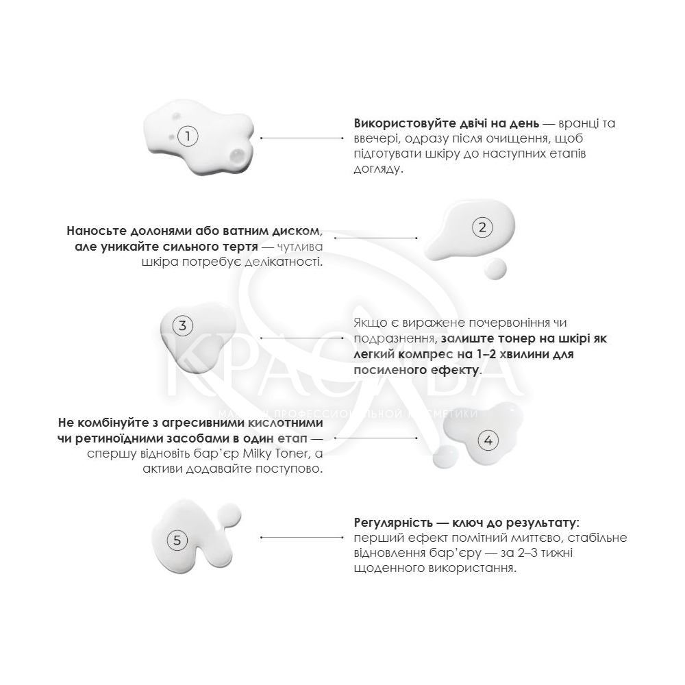 Описание: Milky Toner быстро снимает красноту и реактивность, восстанавливает барьер и глубоко увлажняет. Формула, созданная для чувствительной и проблемной кожи, работает с первого применения: делает тон ровным, текстуру гладкой, а лицо здоровым и сияющим.